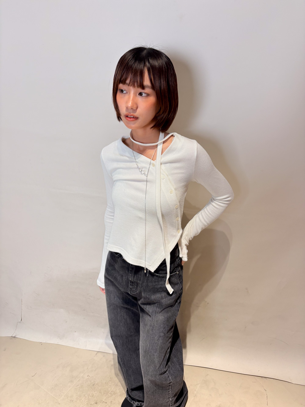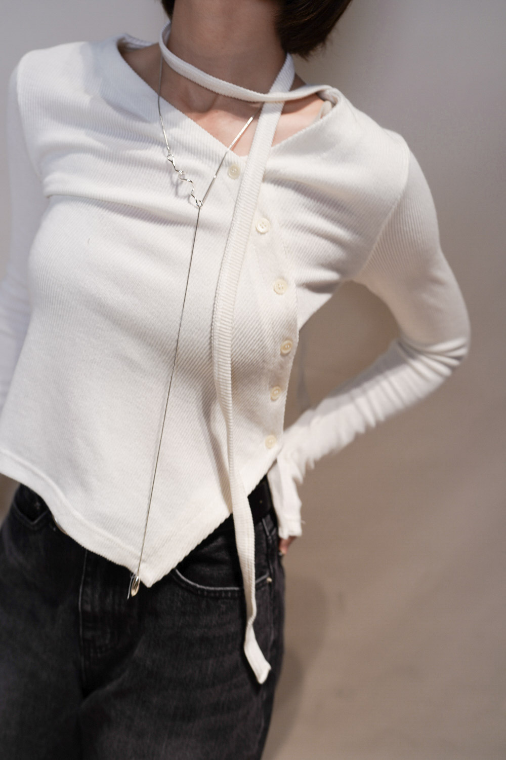 不規則斜鈕扣設計 輕鬆時尚感/