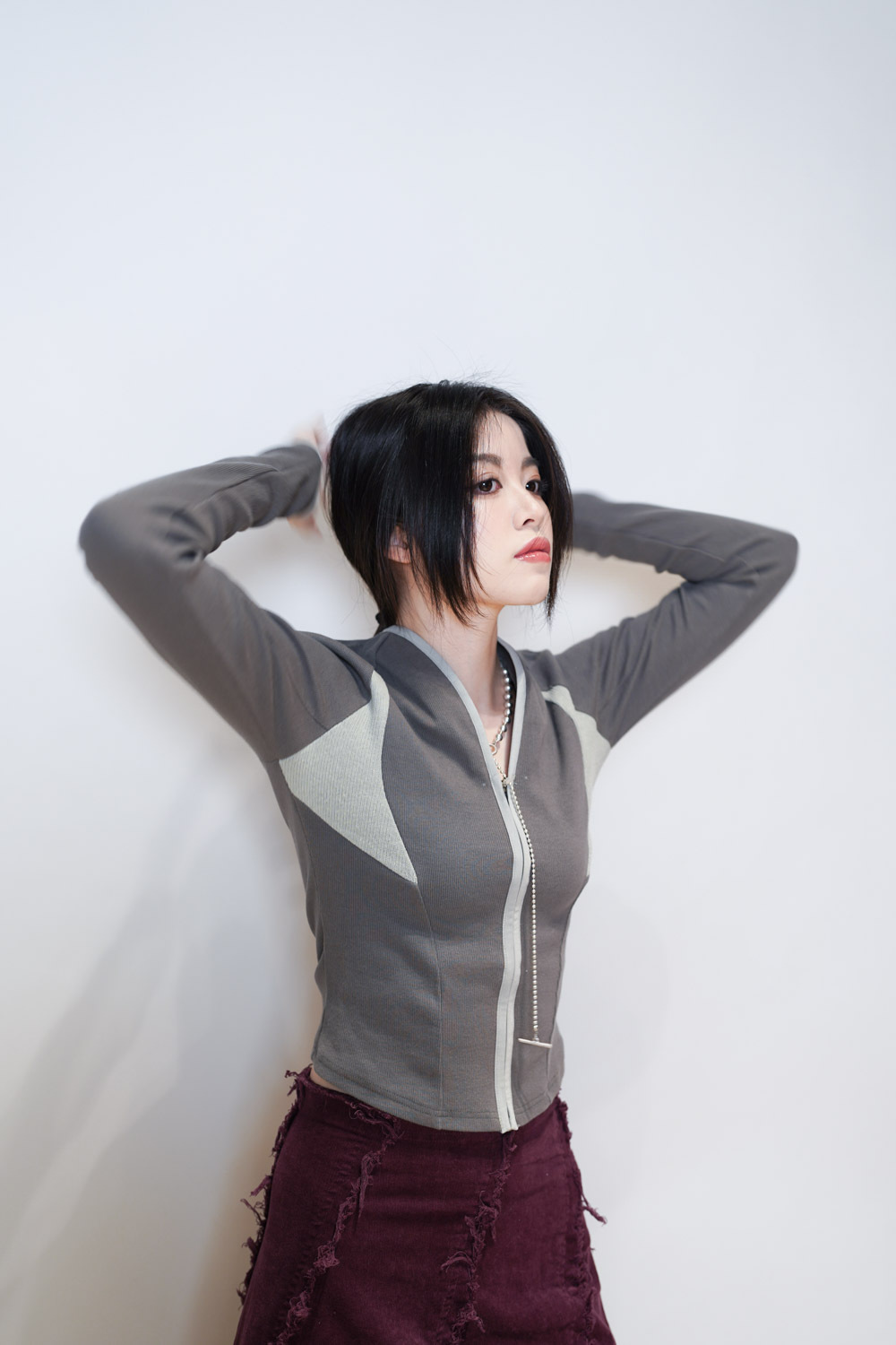 灰綠拼淺灰 日常中性機能風/黑色拼深灰 低調顯瘦有個性