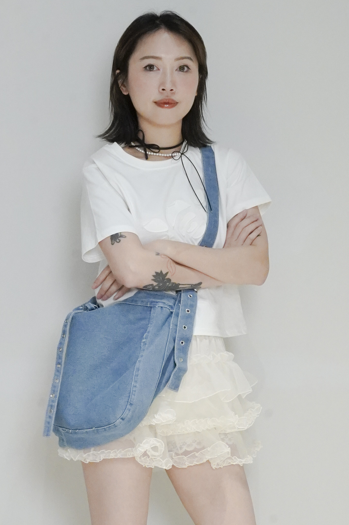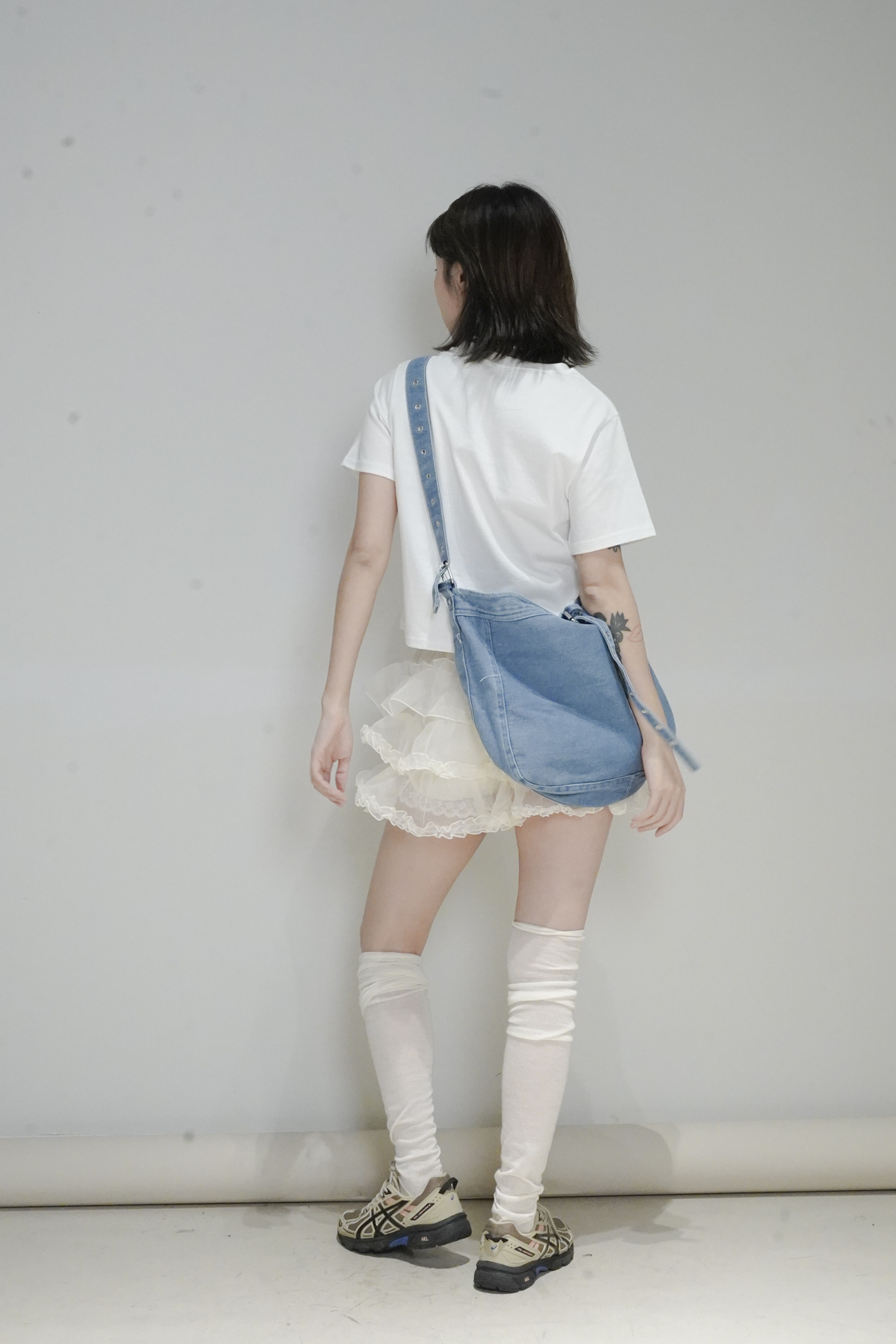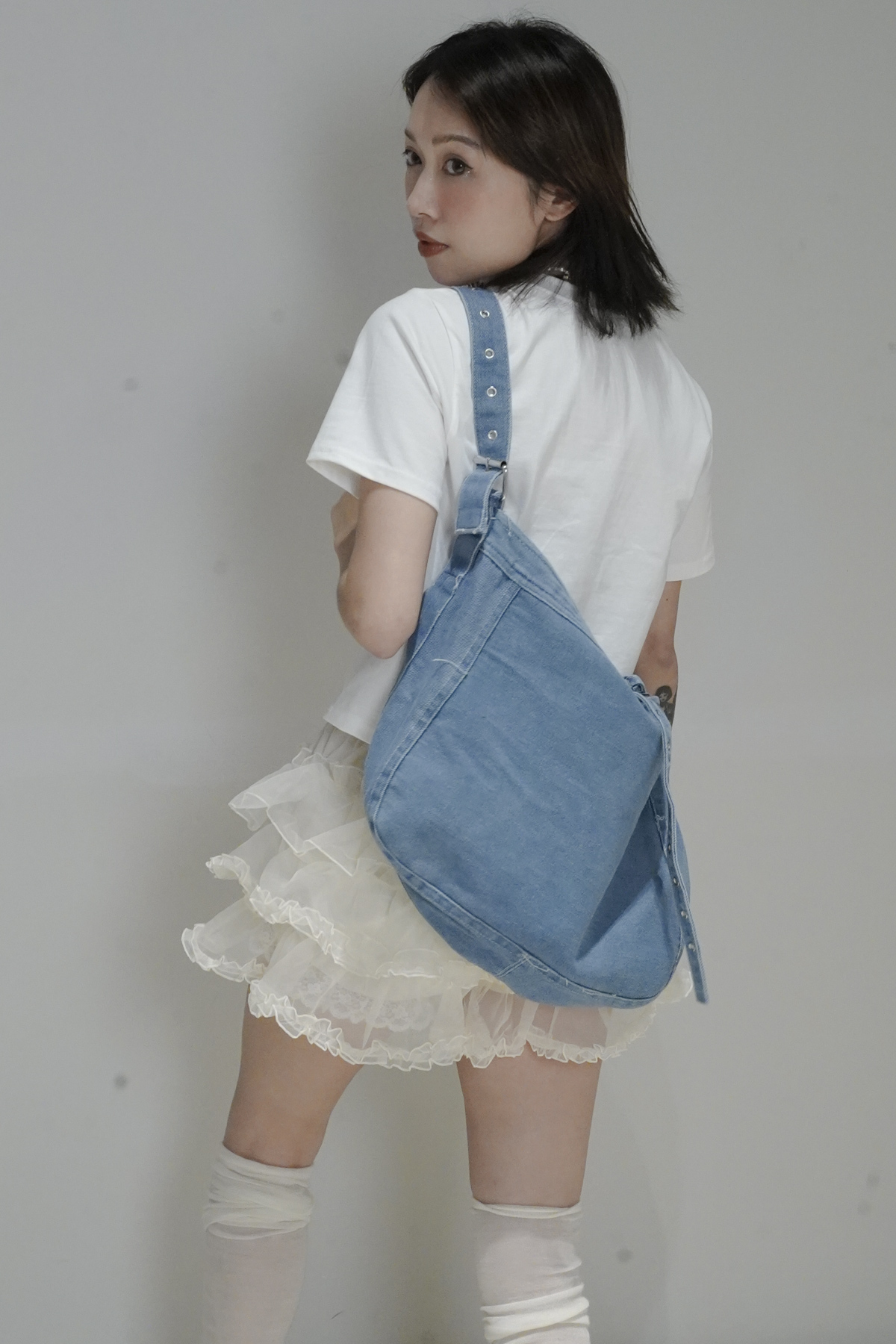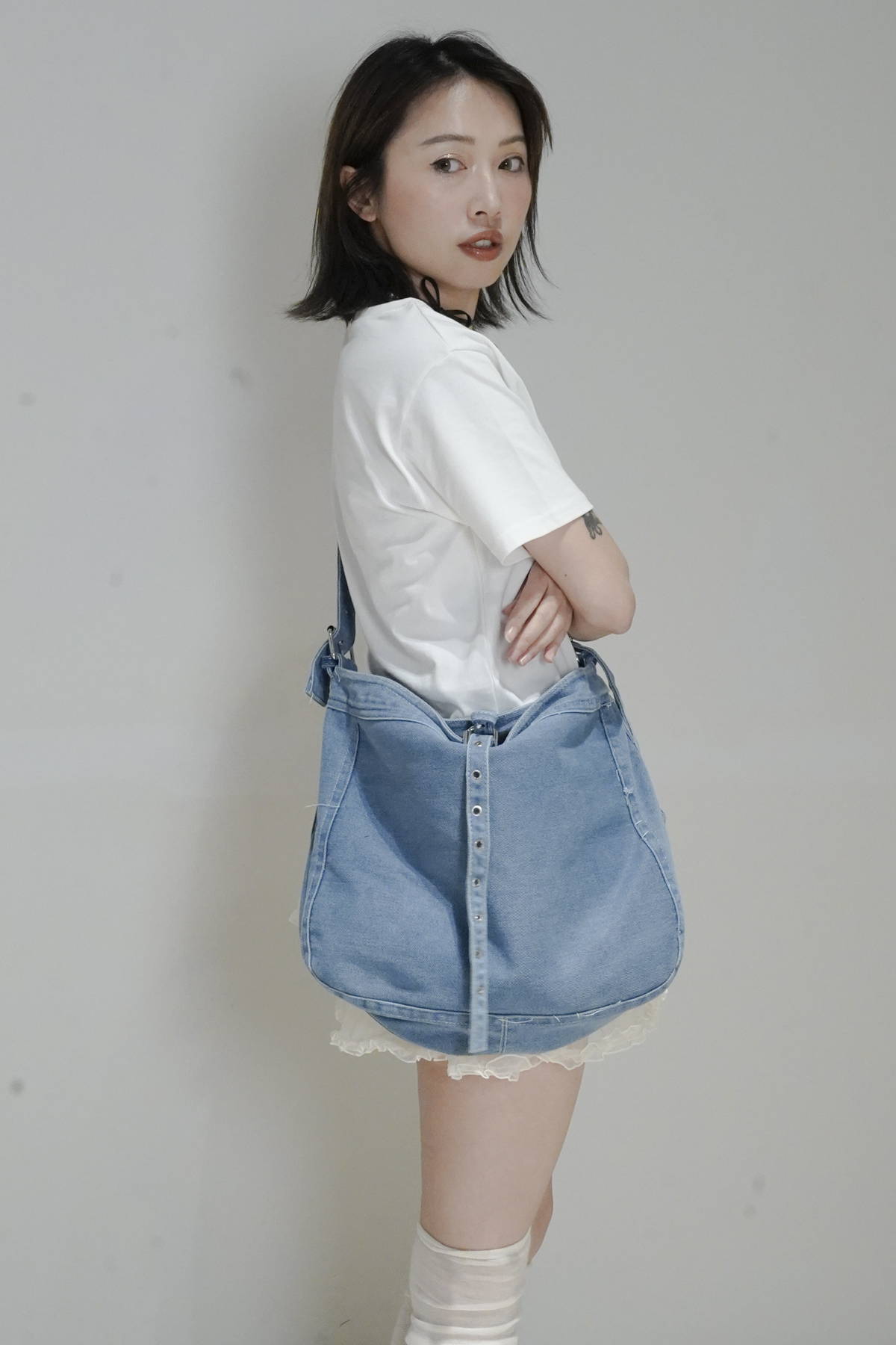 洗水牛仔布料/肩帶可調較長度 / 大容量 / 慵懶頹廢感而不顯廉價/ 金屬扣充滿個性/