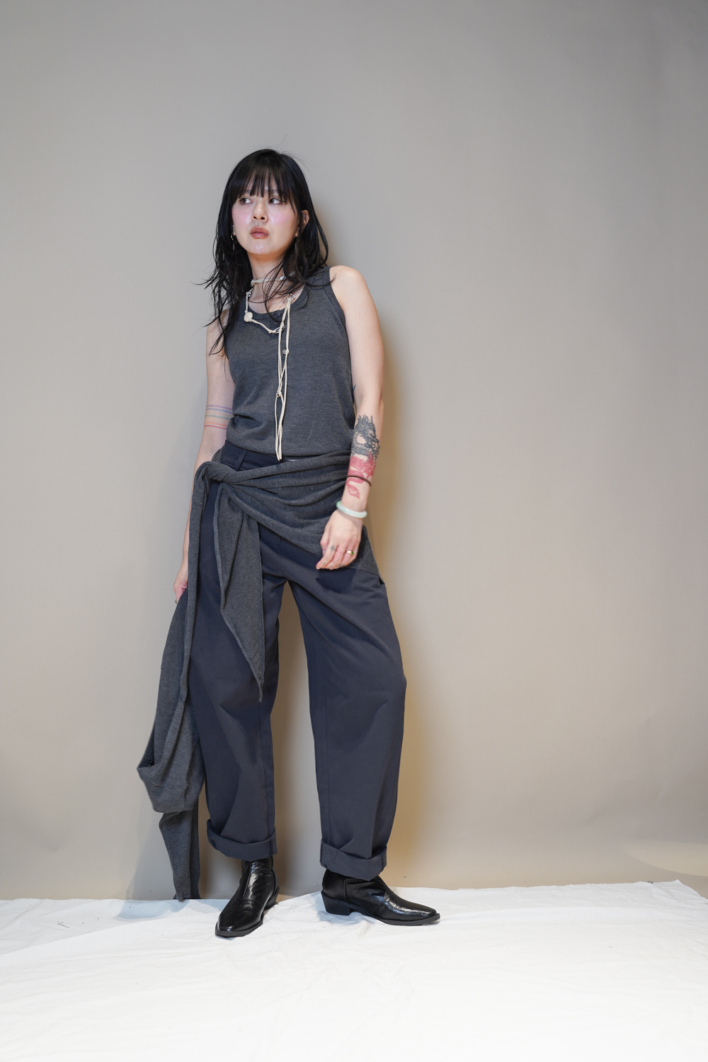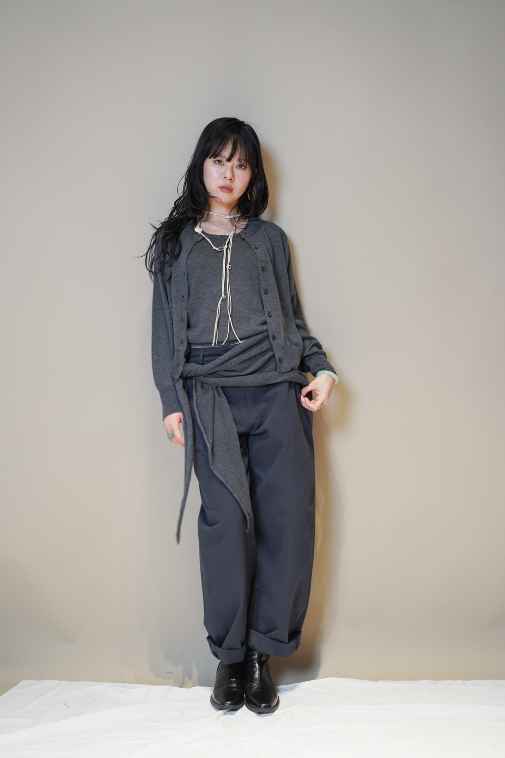 也可纏於脖子作長項鍊 視覺上修飾臉型/
