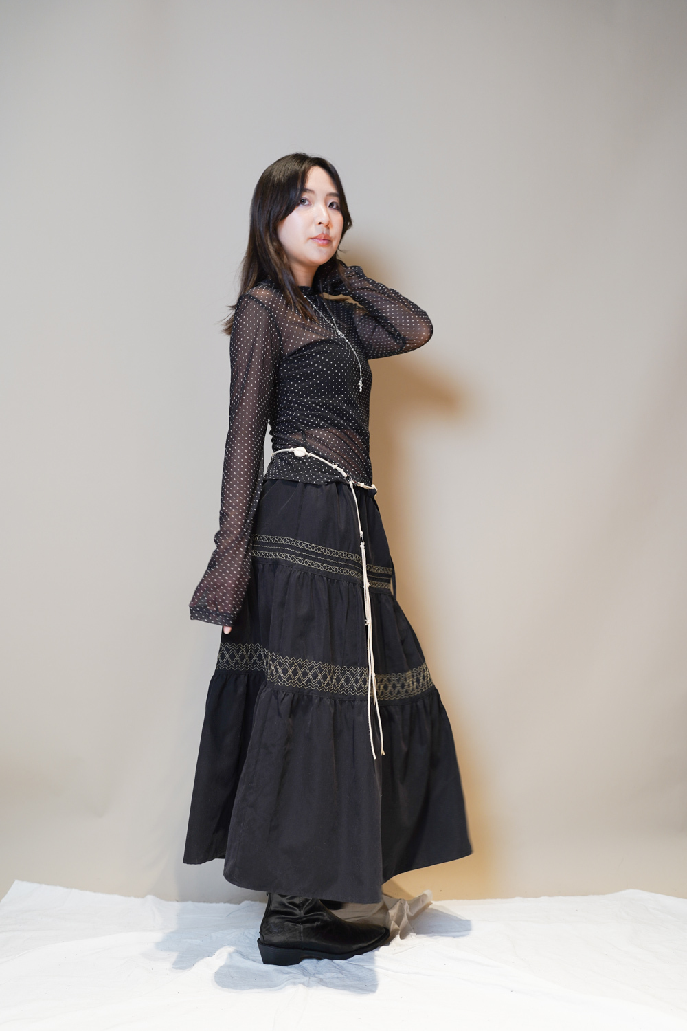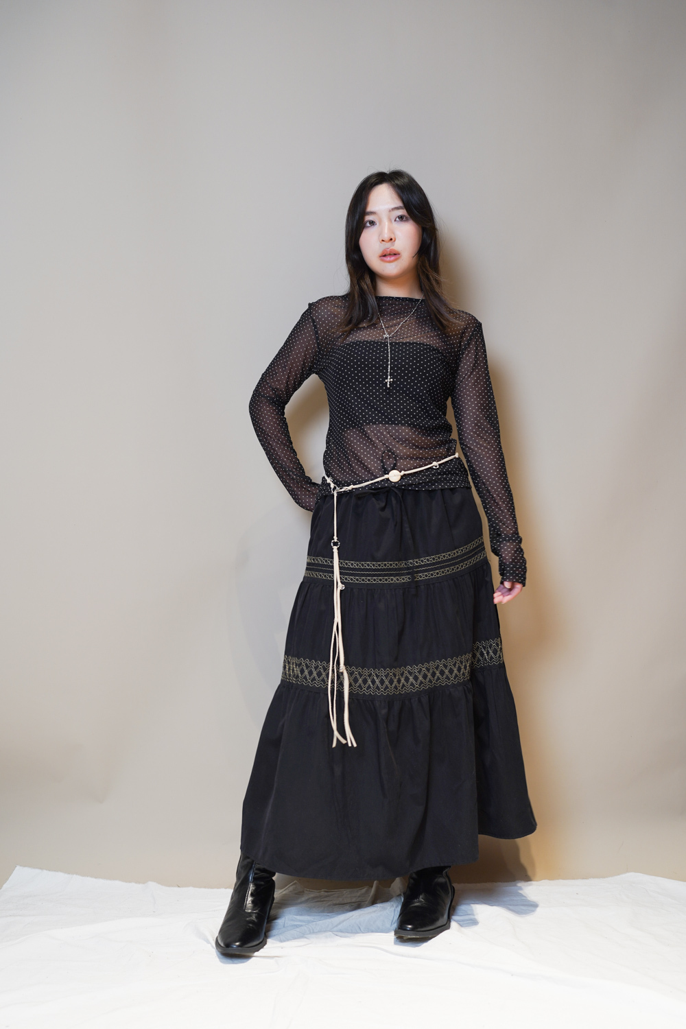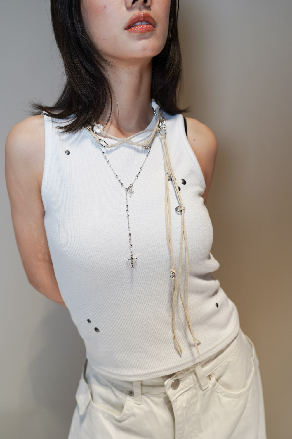 Waist belt / necklace: knot-tying (BEIGE)