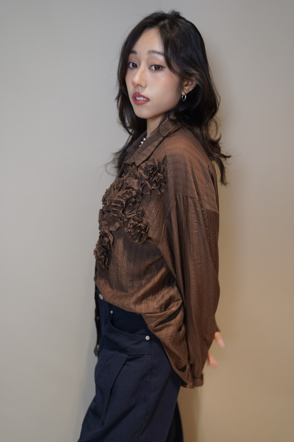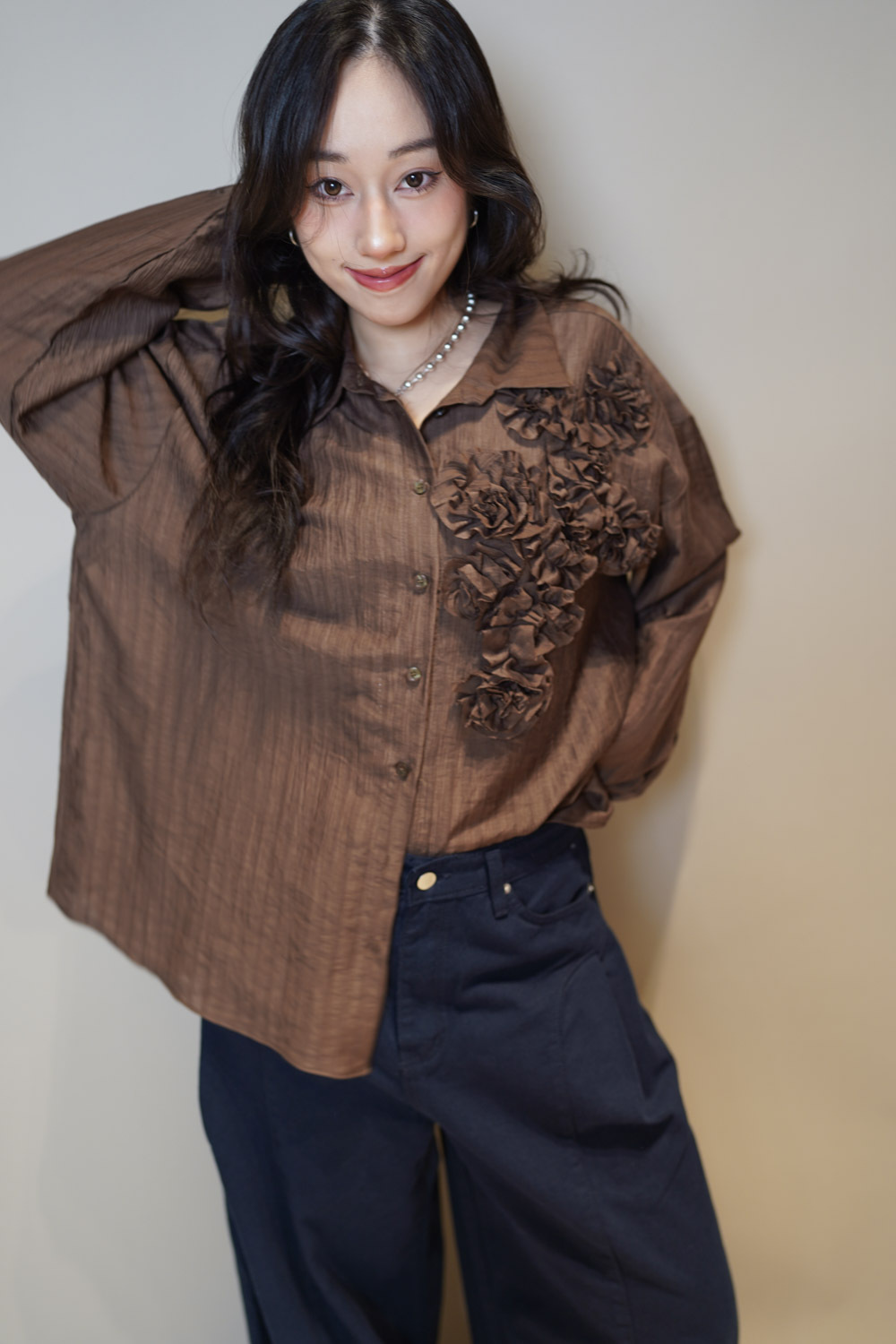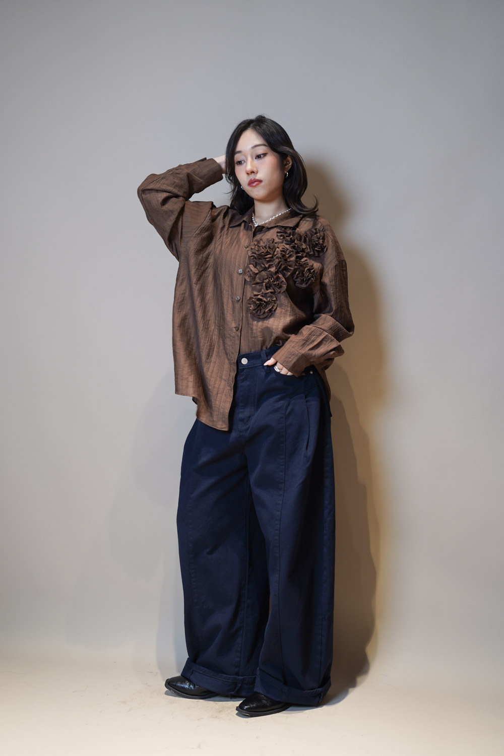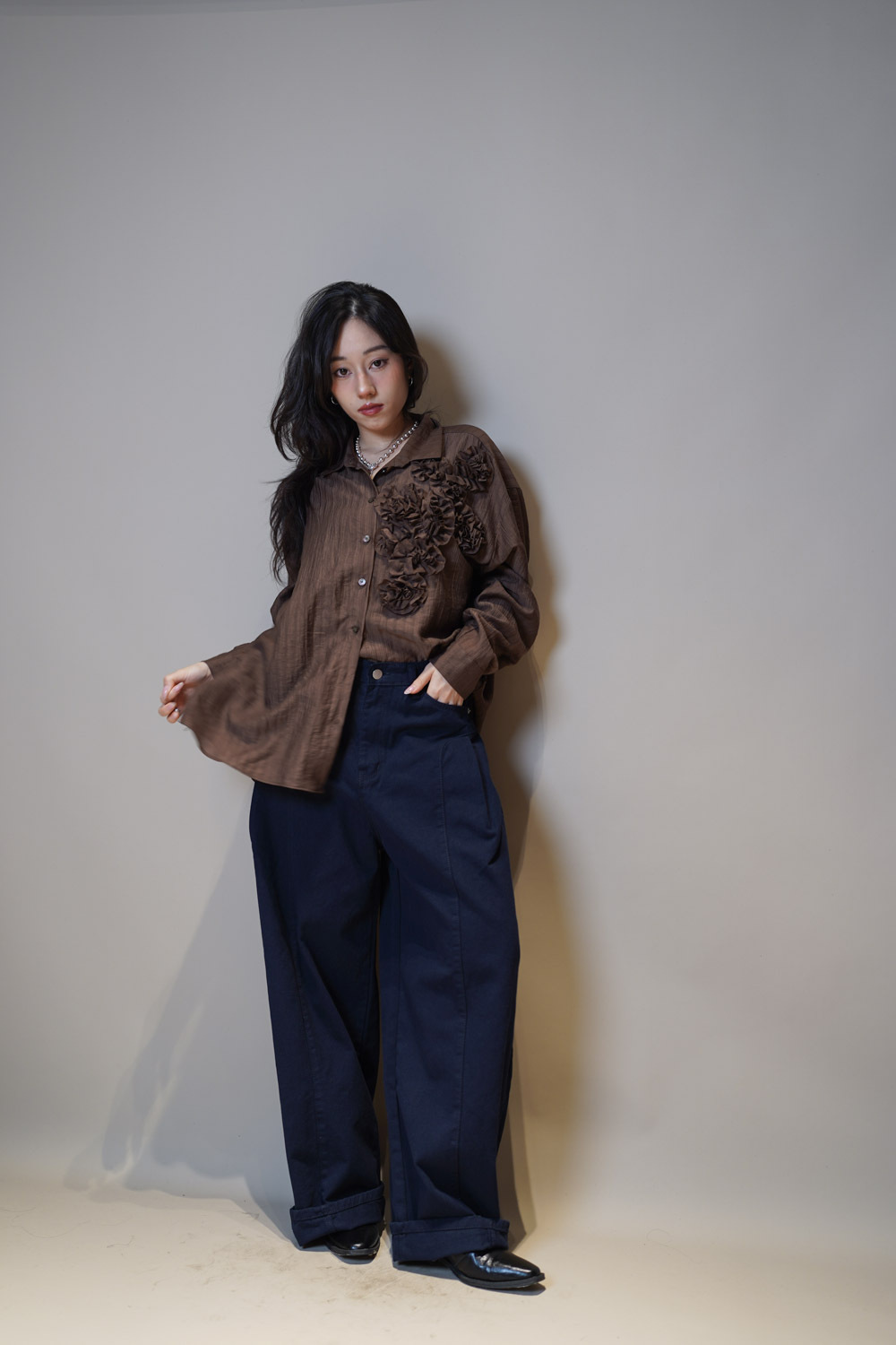 左邊胸前立體同款布料玫瑰花裝飾 玩味感十足/時尚不無聊/