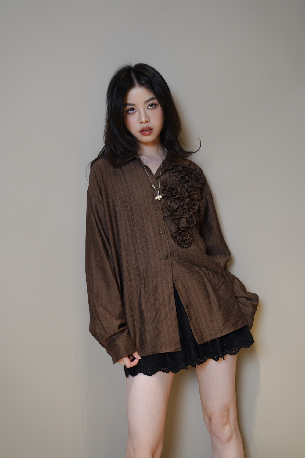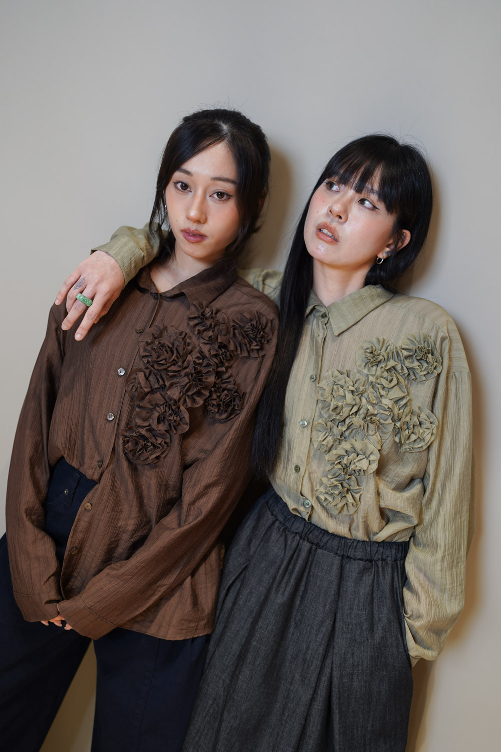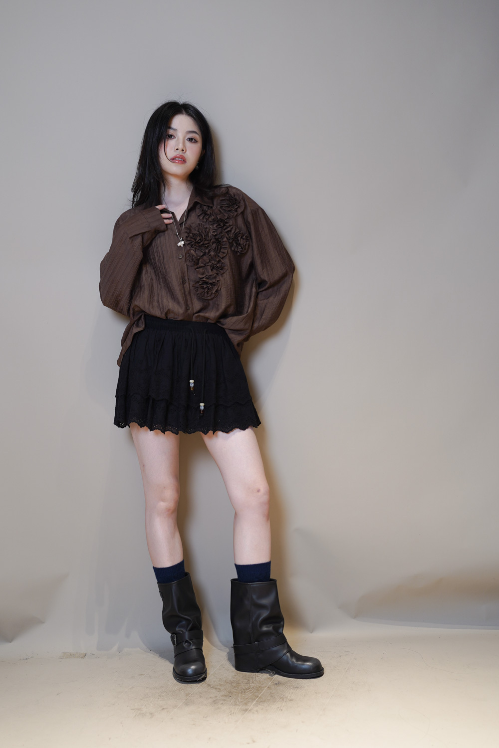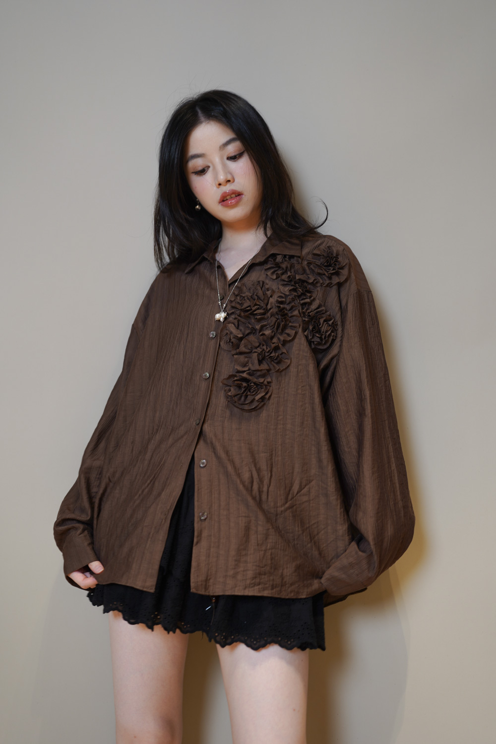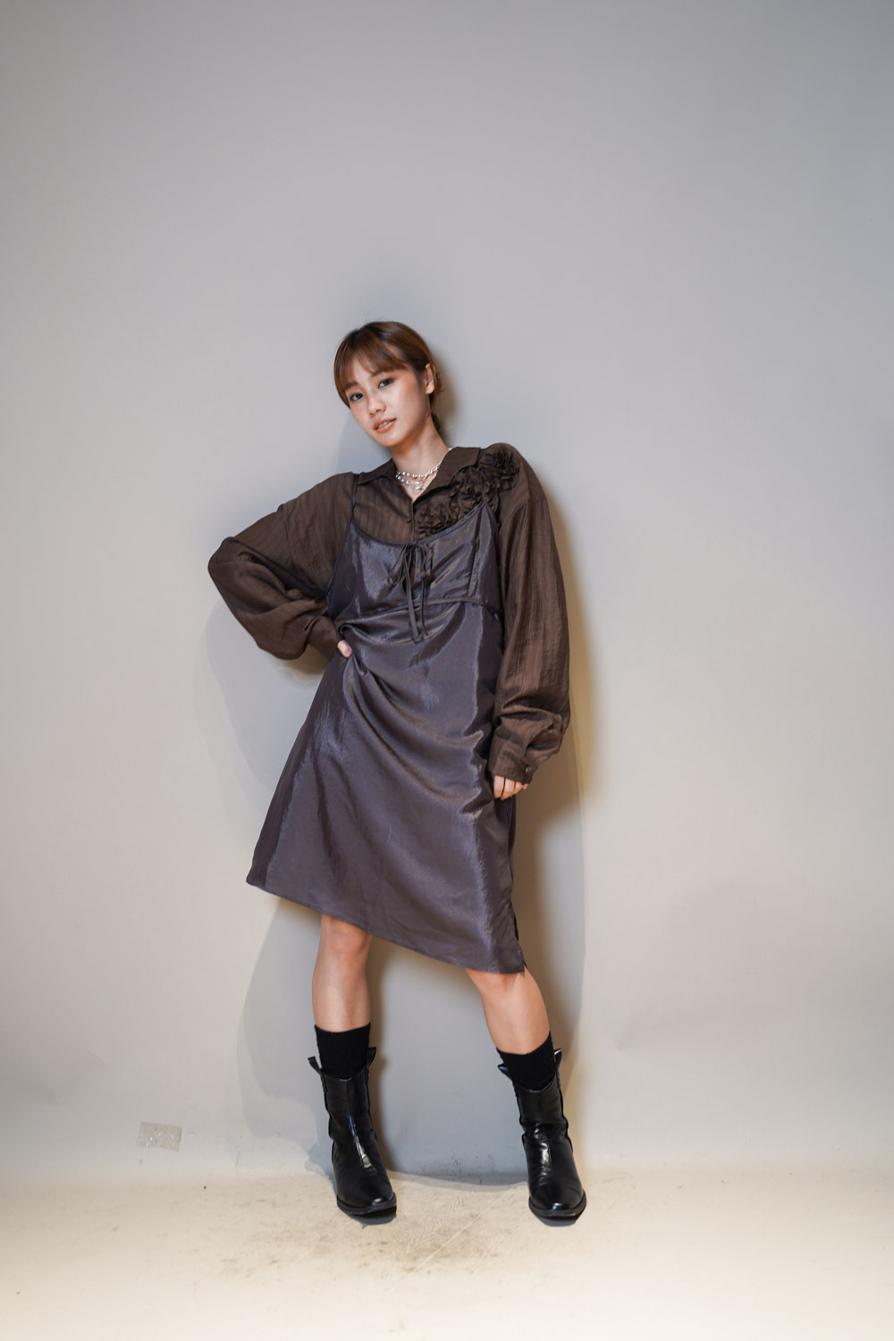 左邊胸前立體同款布料玫瑰花裝飾 玩味感十足/時尚不無聊/