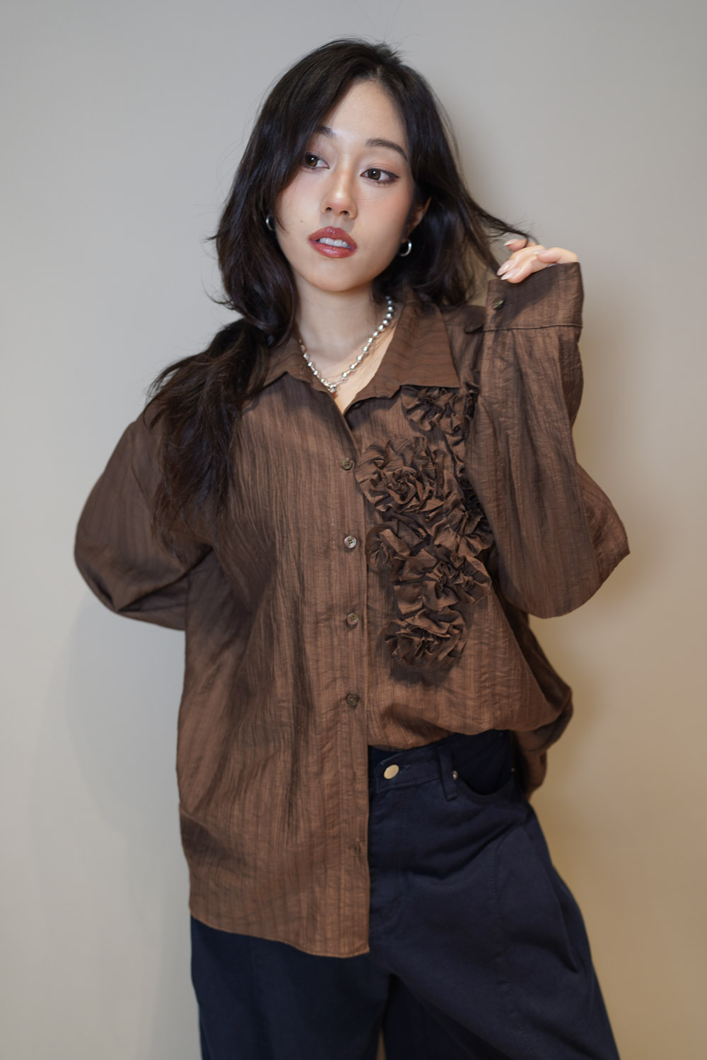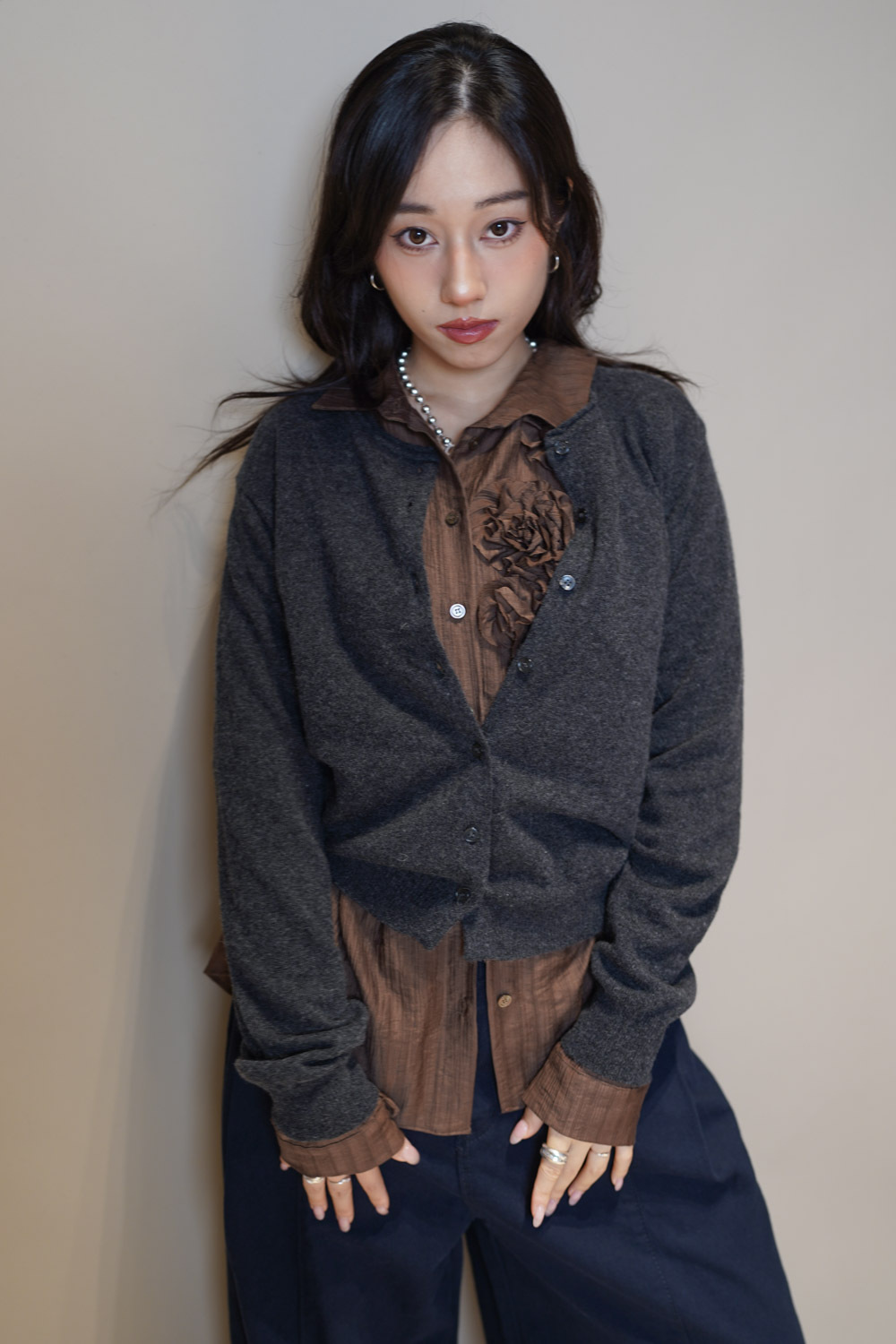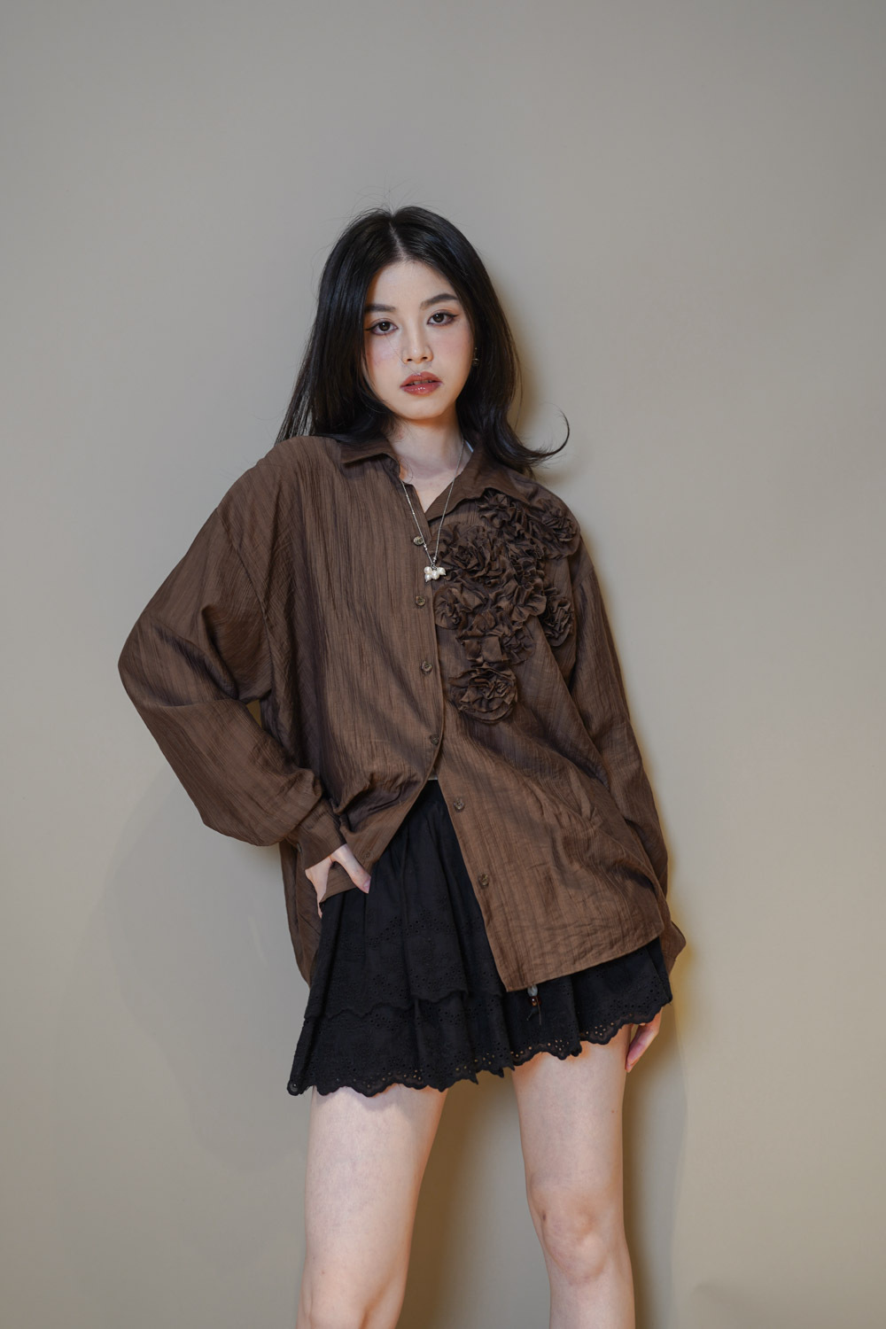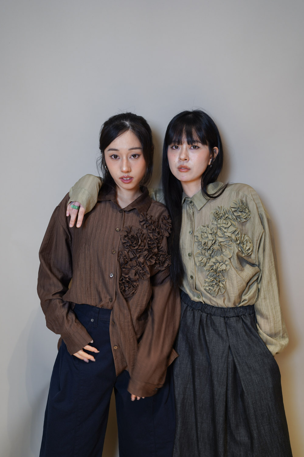 左邊胸前立體同款布料玫瑰花裝飾 玩味感十足/時尚不無聊/