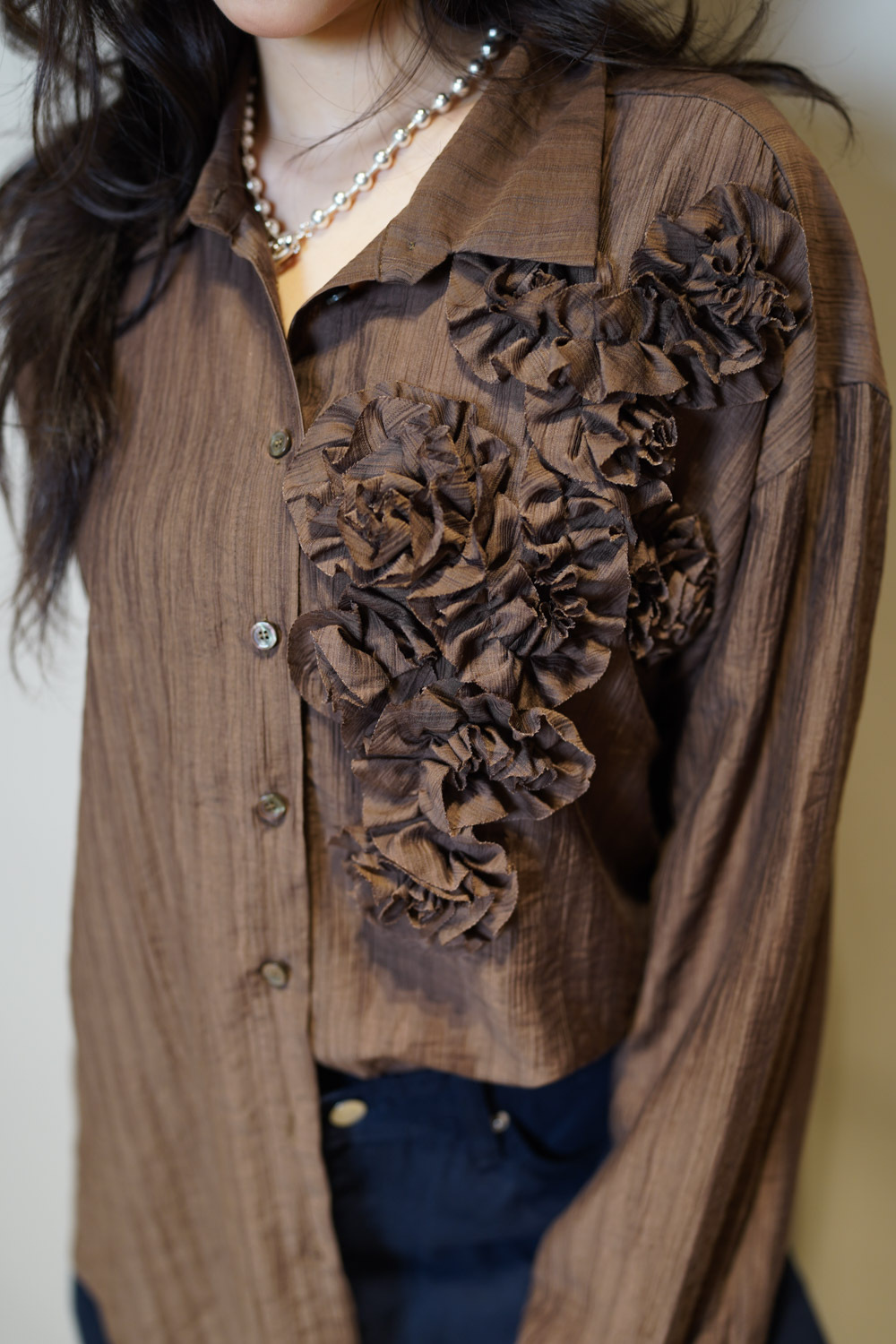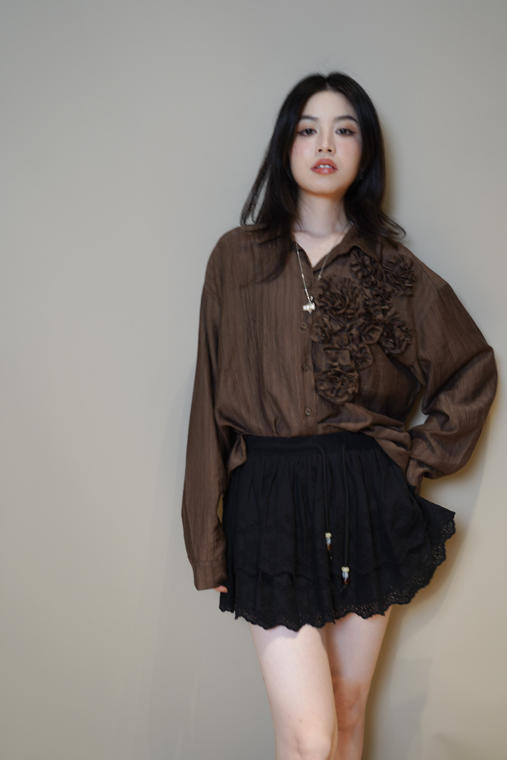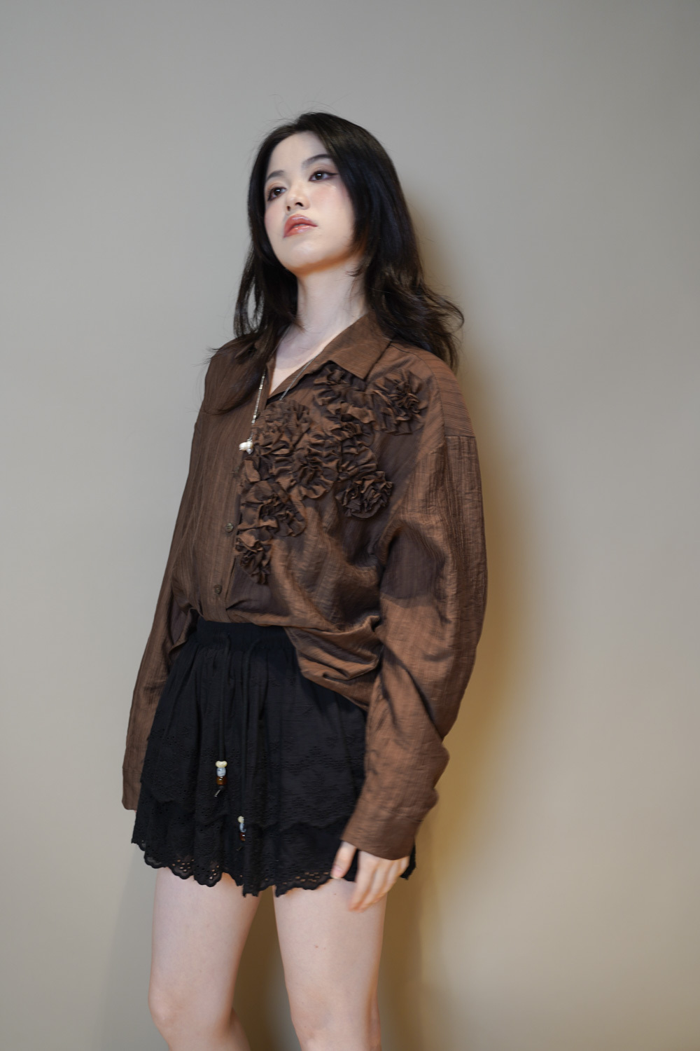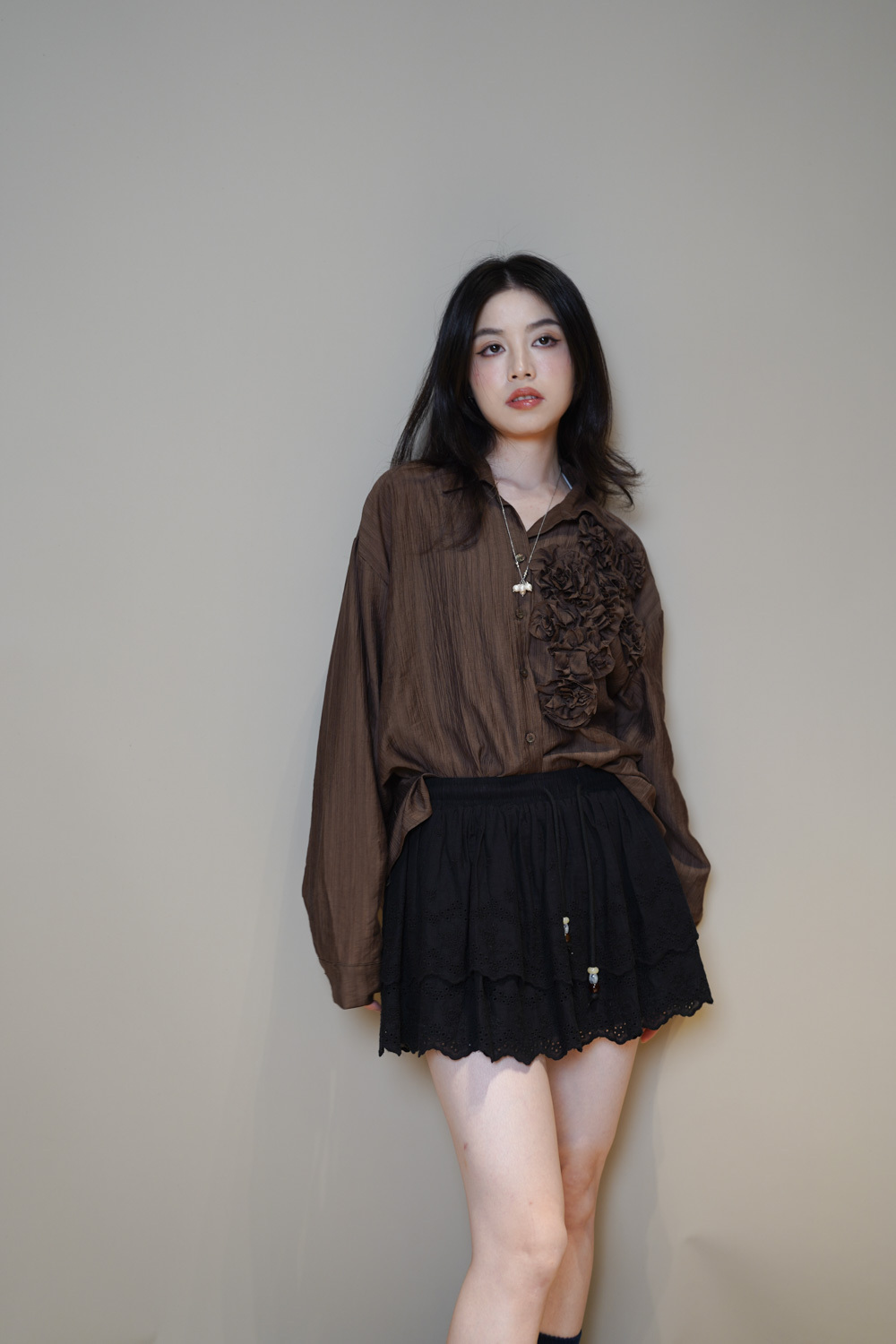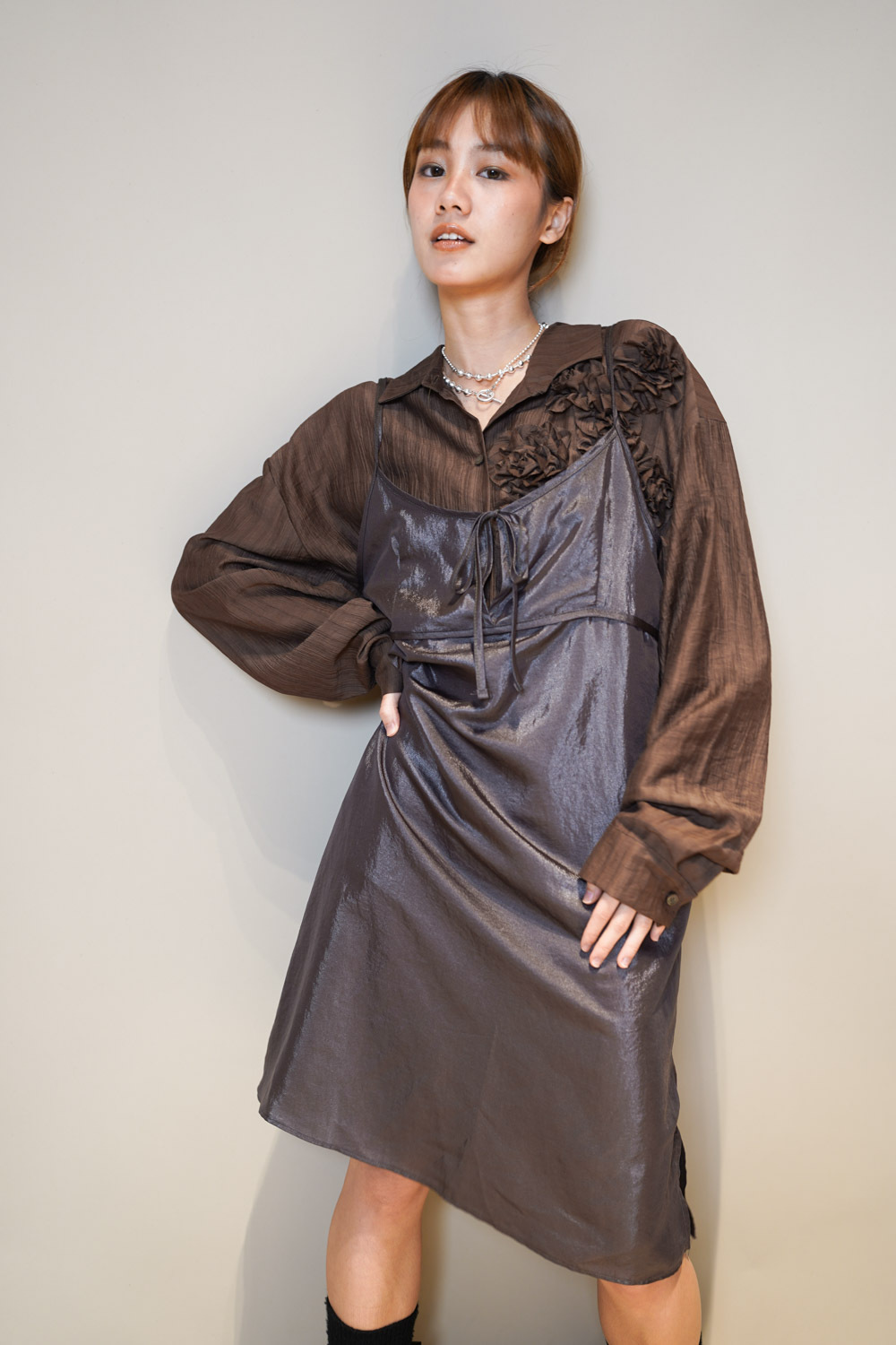 左邊胸前立體同款布料玫瑰花裝飾 玩味感十足/時尚不無聊/