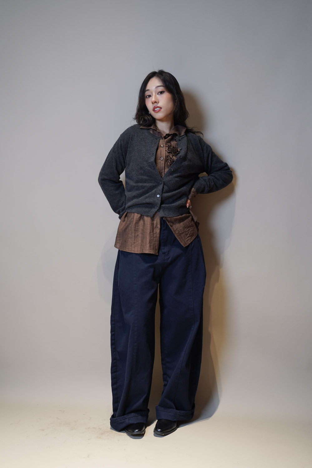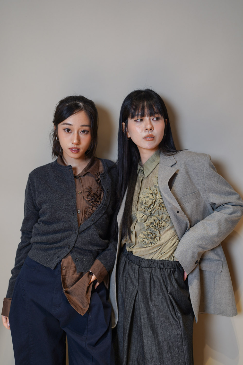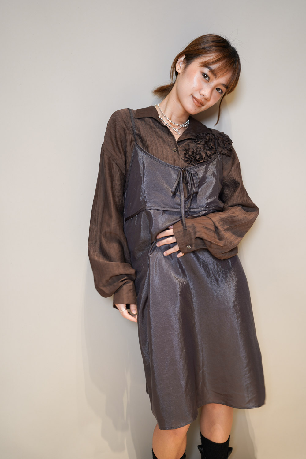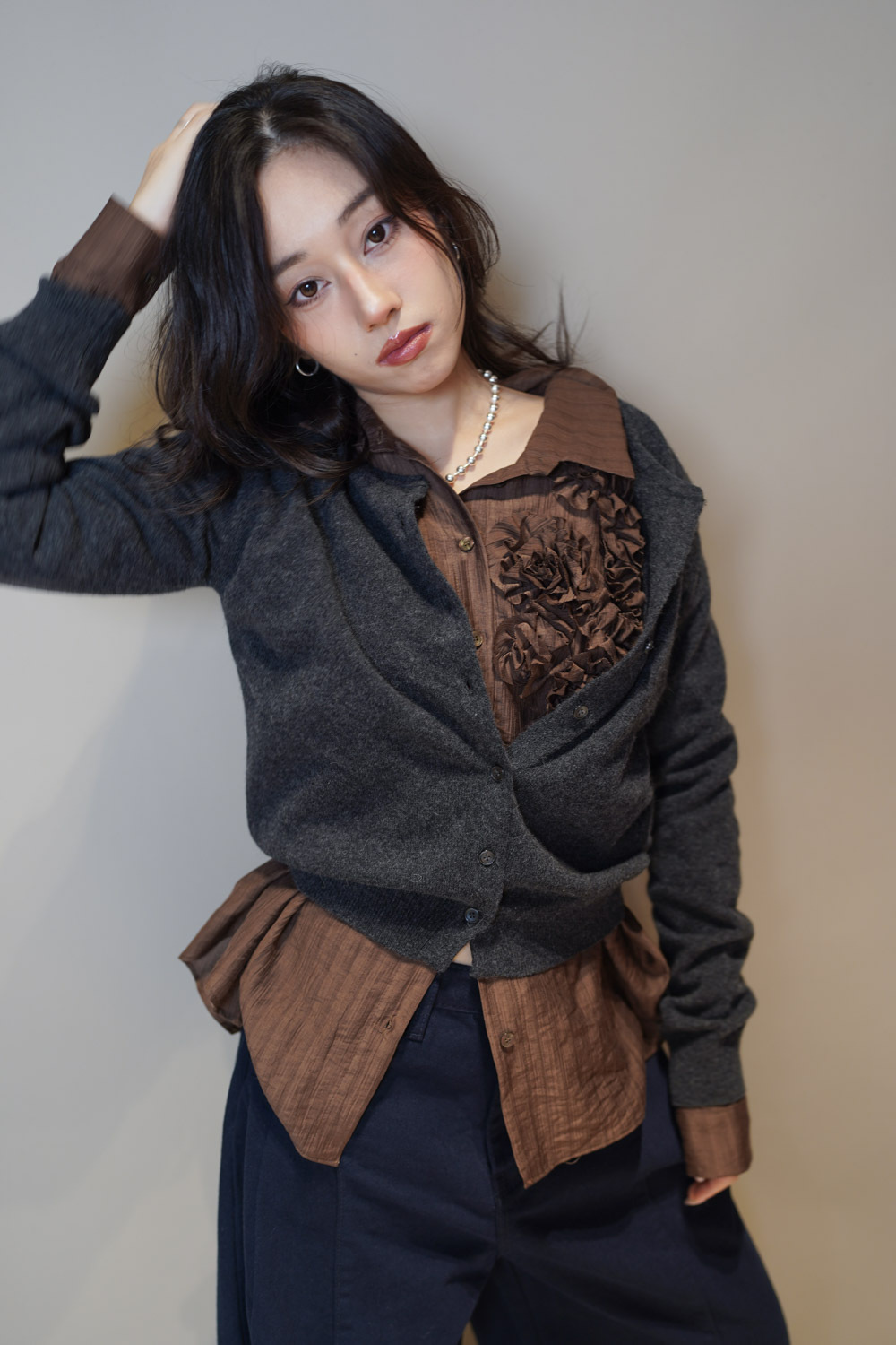 左邊胸前立體同款布料玫瑰花裝飾 玩味感十足/時尚不無聊/