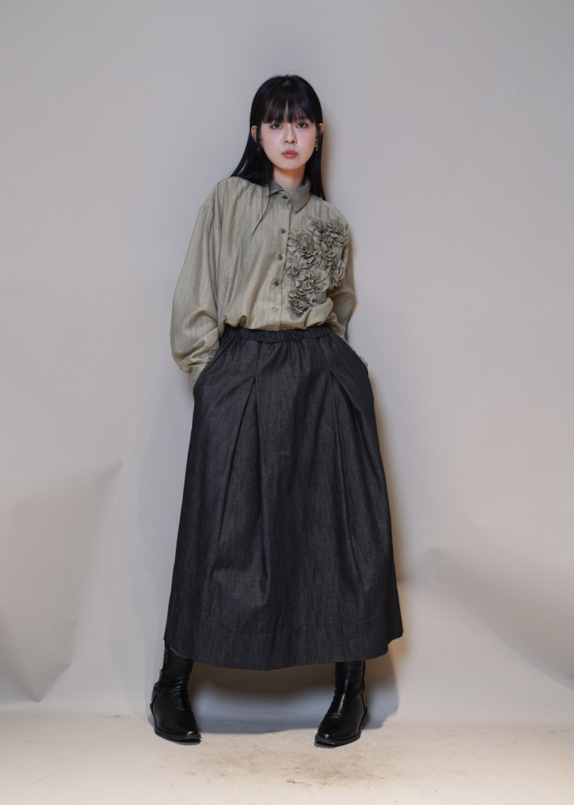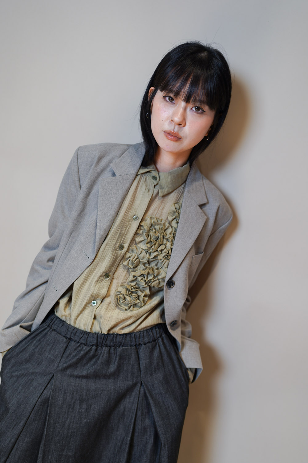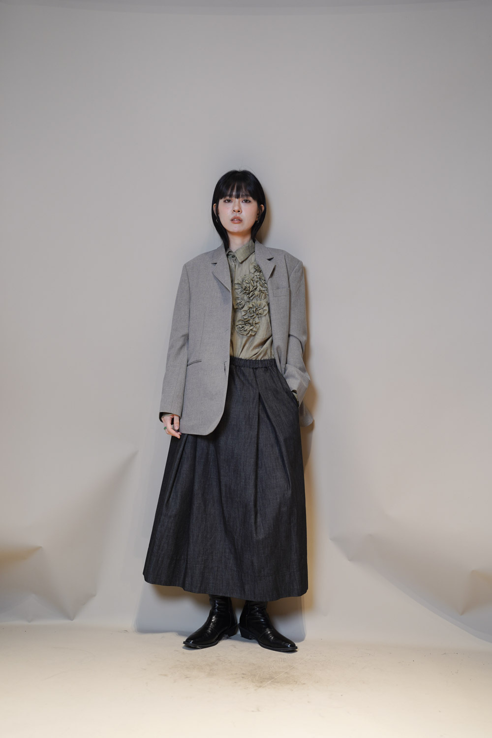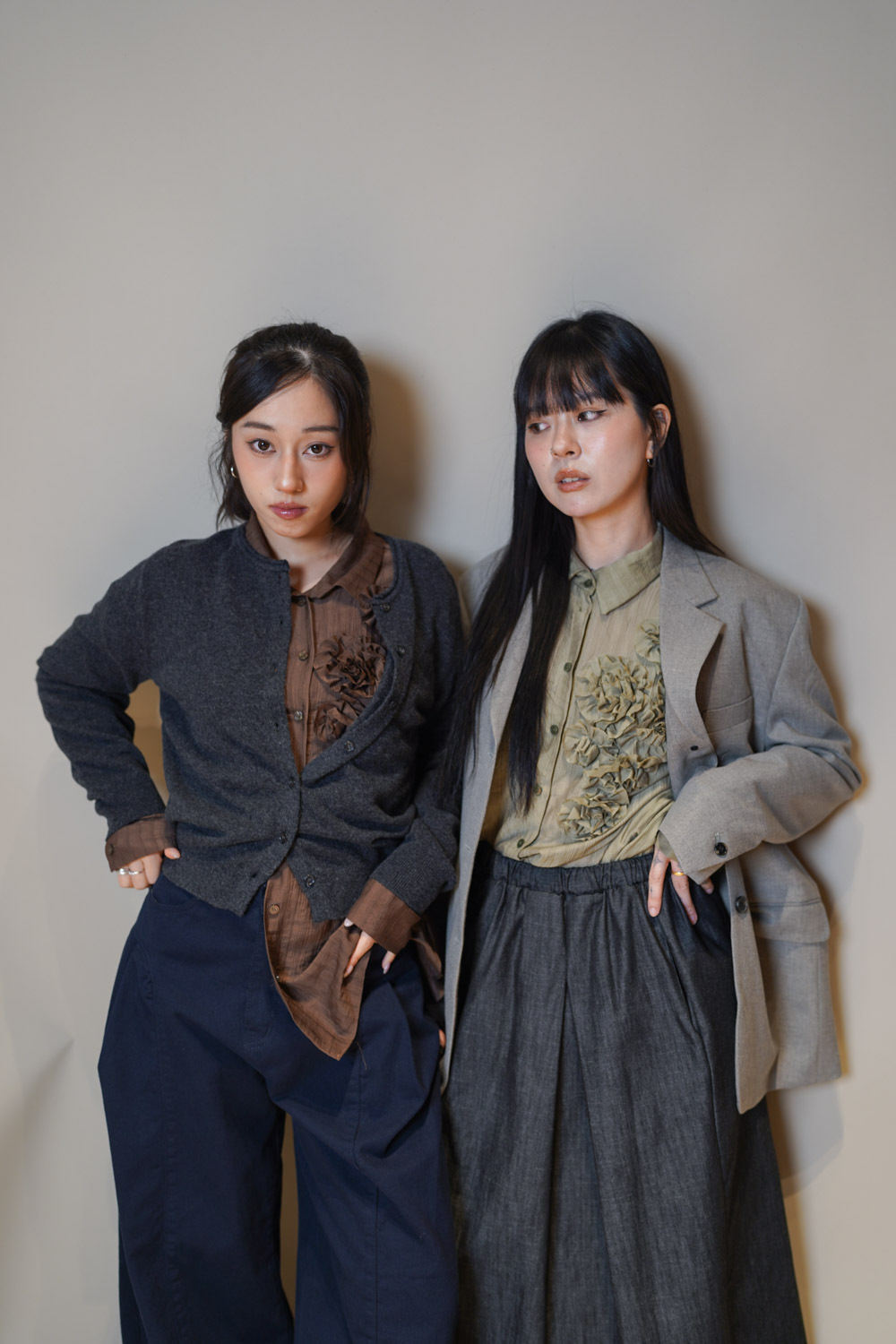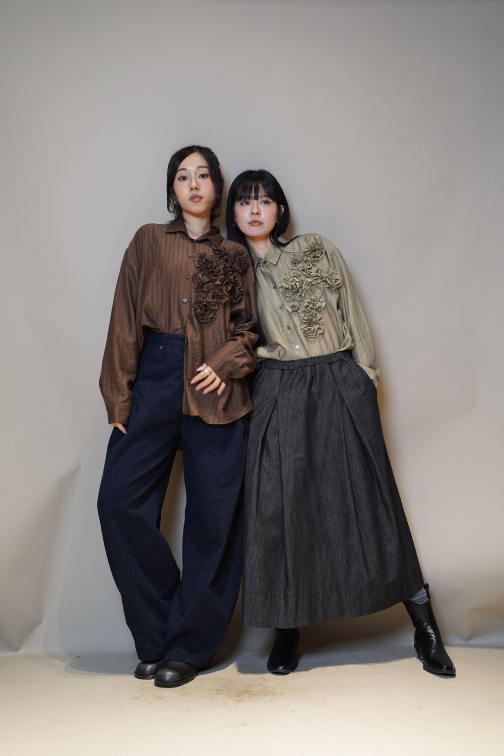 左邊胸前立體同款布料玫瑰花裝飾 玩味感十足/時尚不無聊/