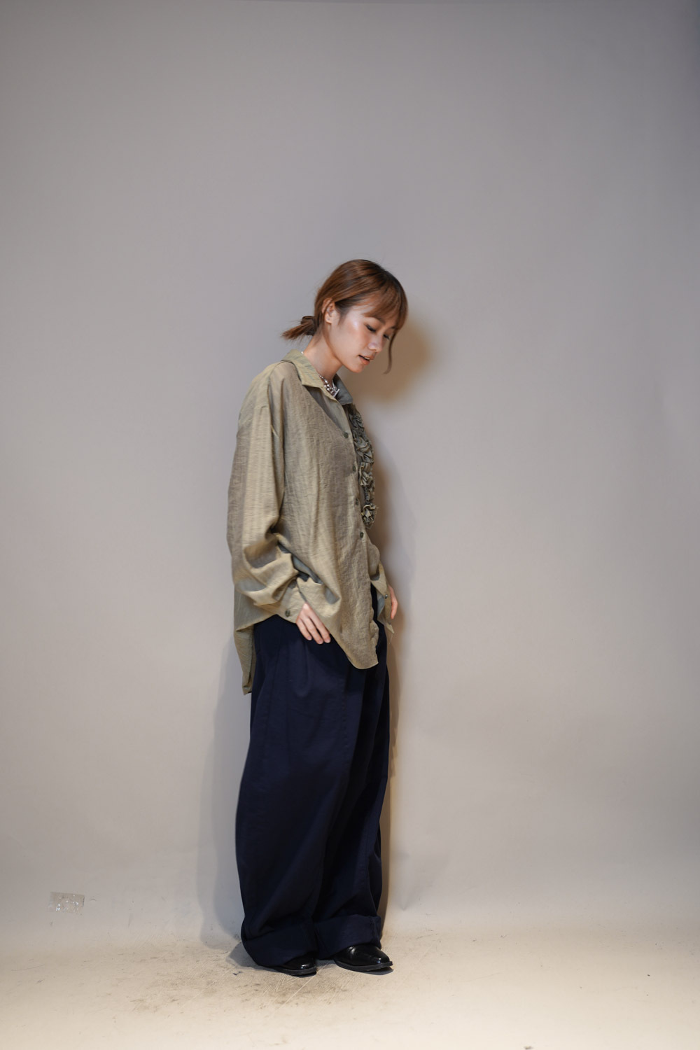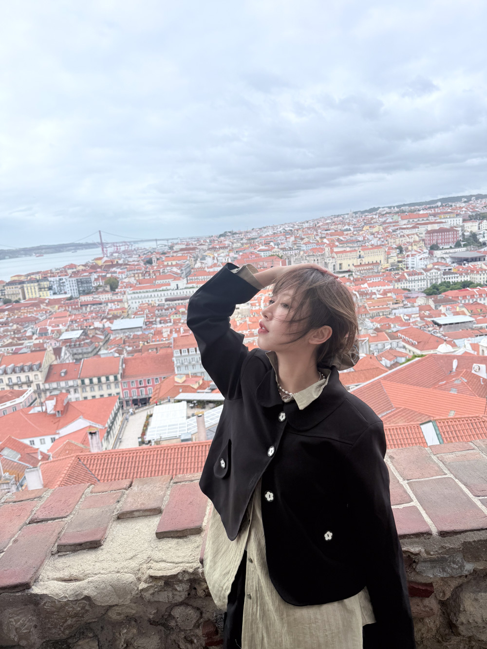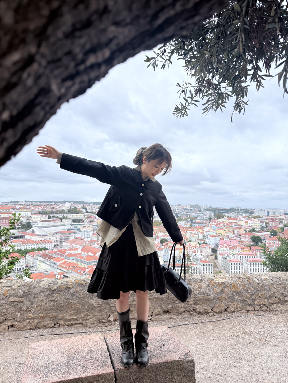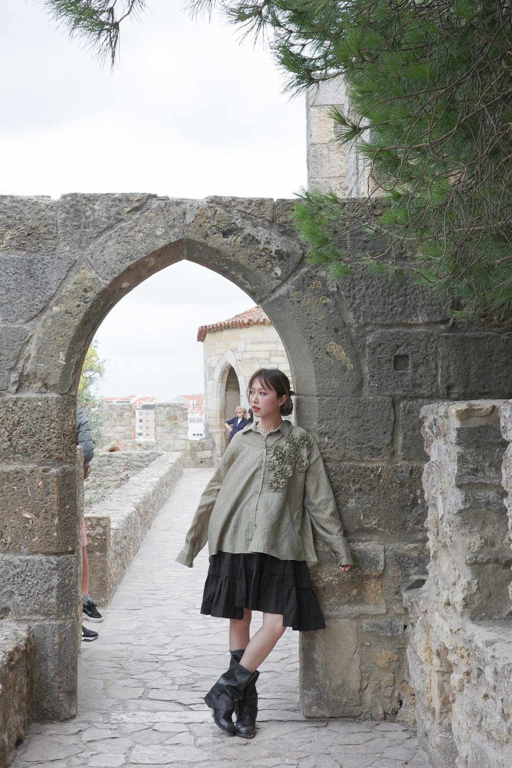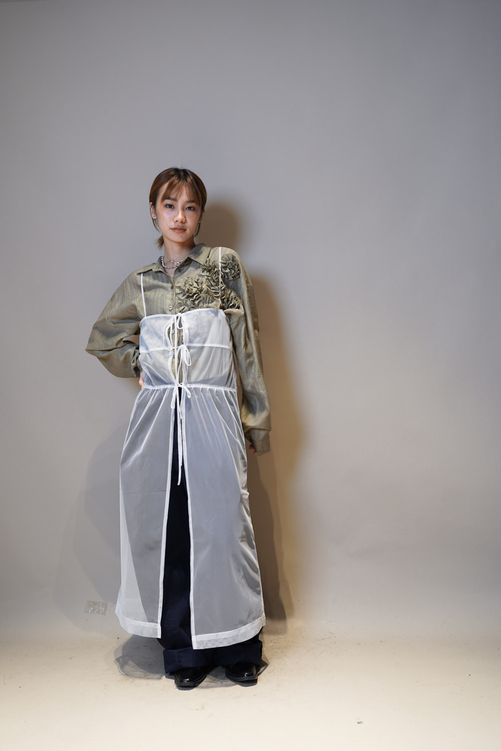 左邊胸前立體同款布料玫瑰花裝飾 玩味感十足/時尚不無聊/