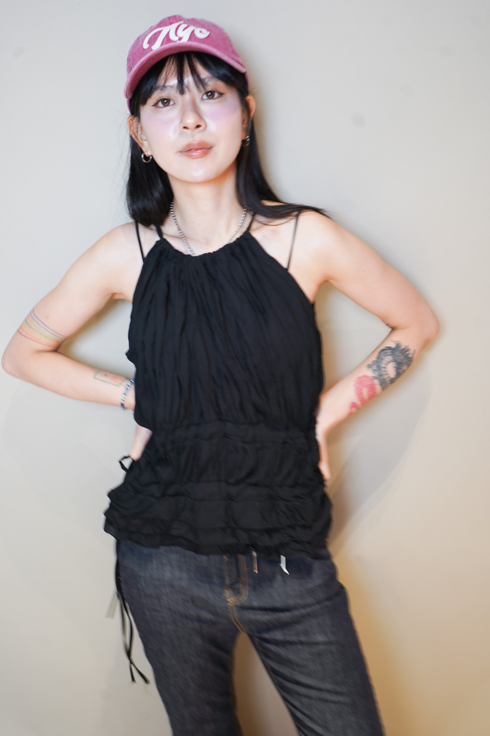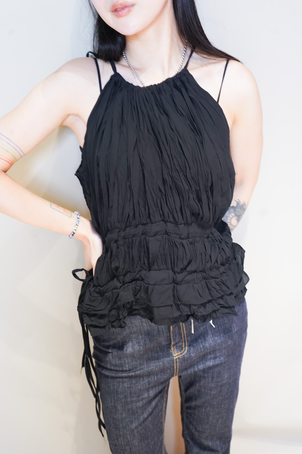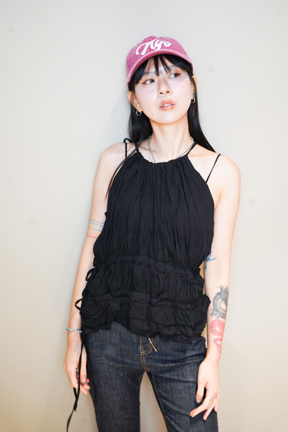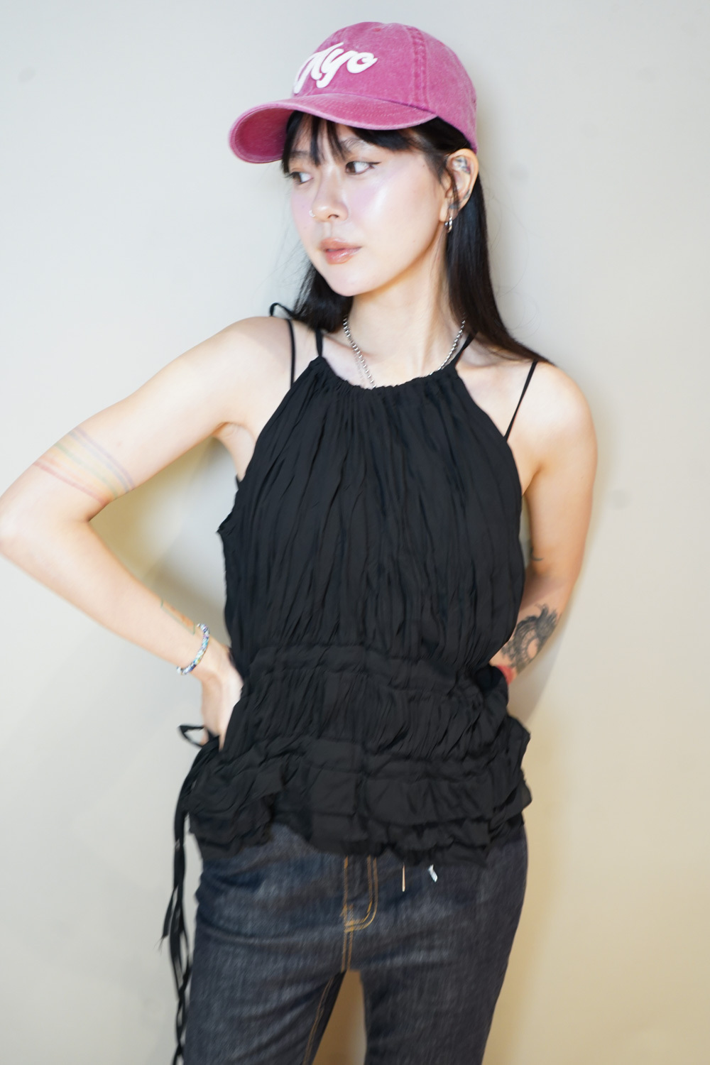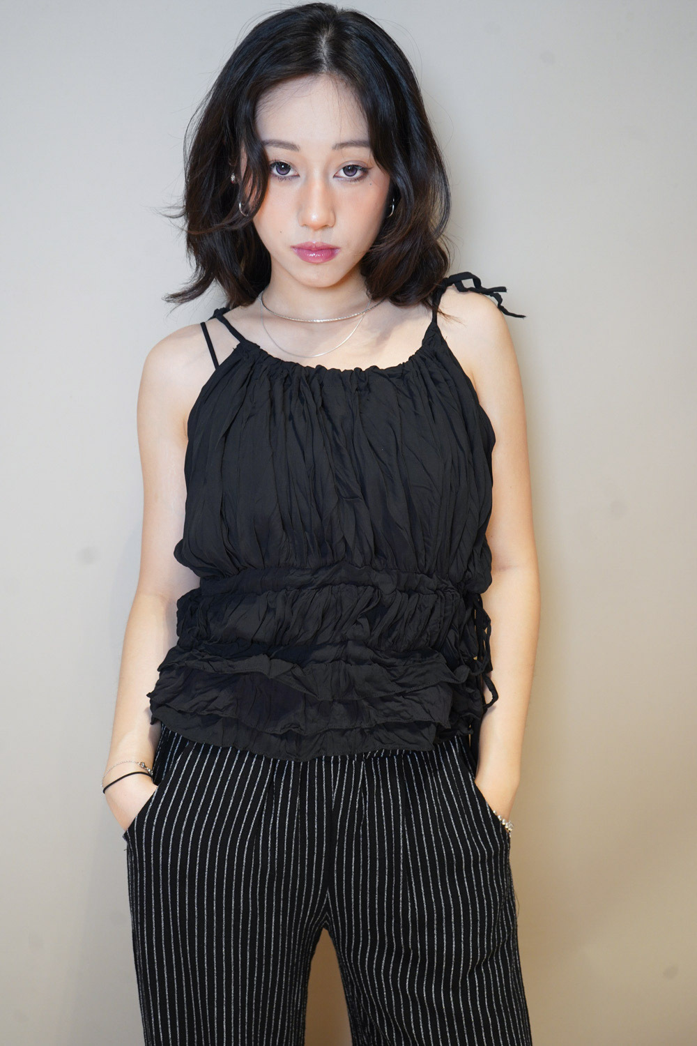 Wrinkle loose tank top (BLACK) (WHITE/BLACK)