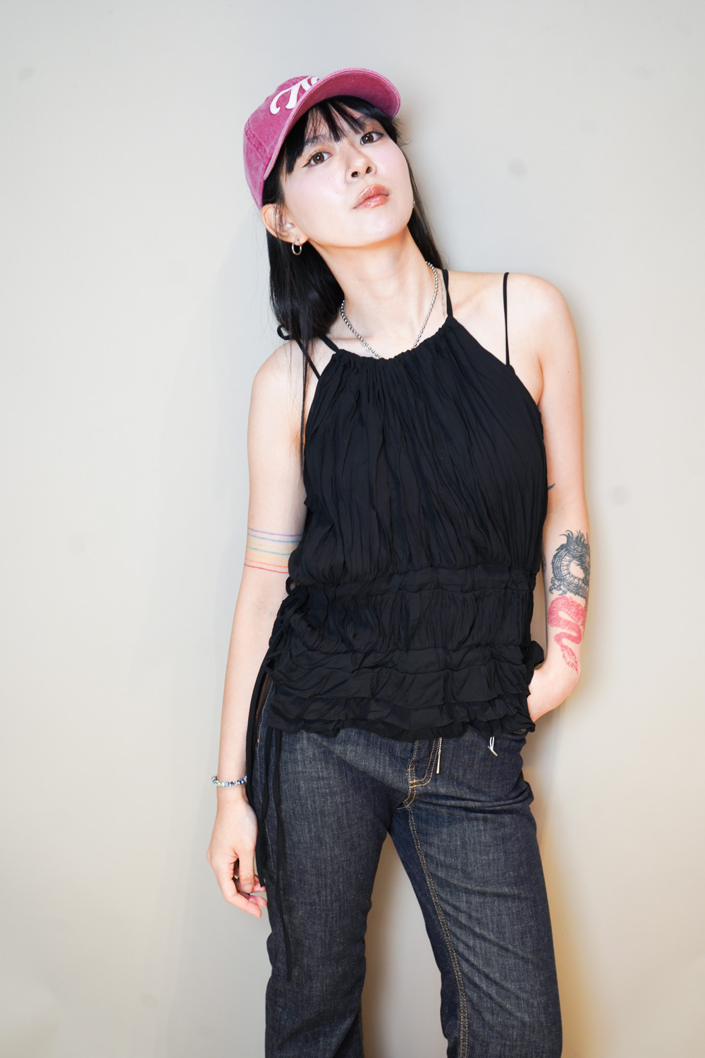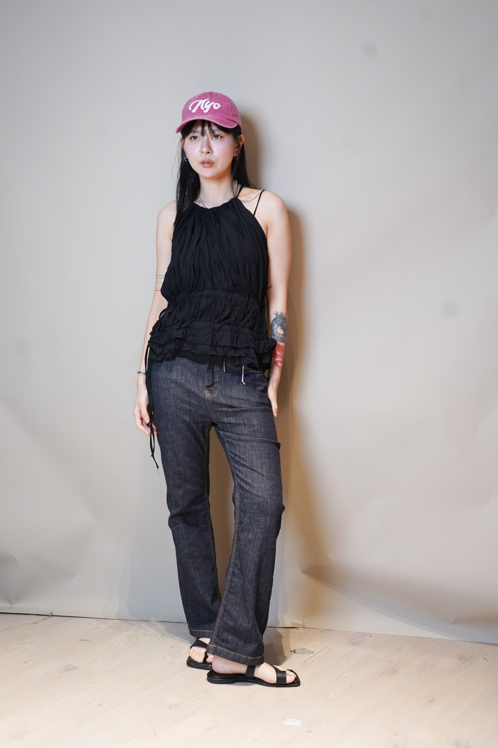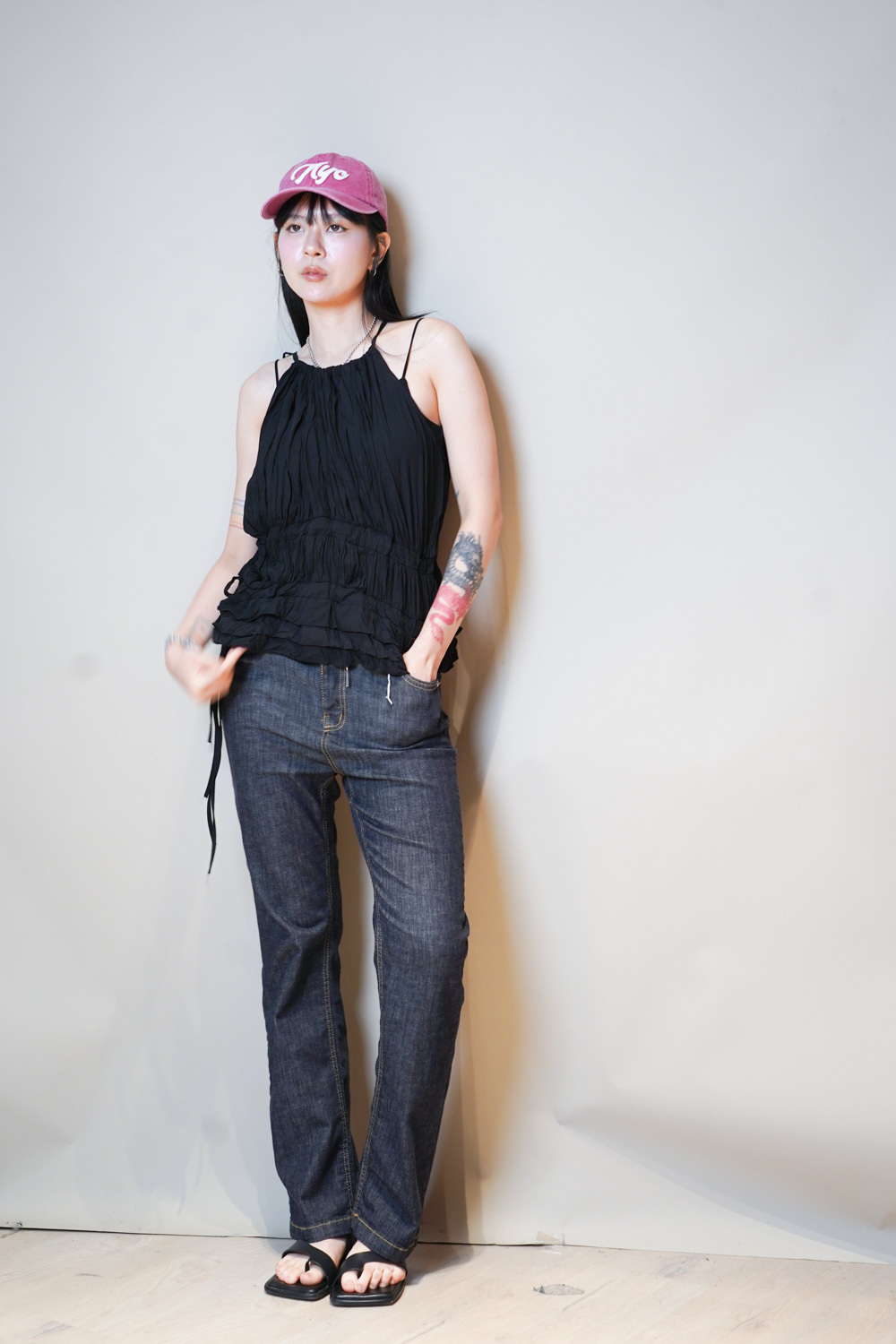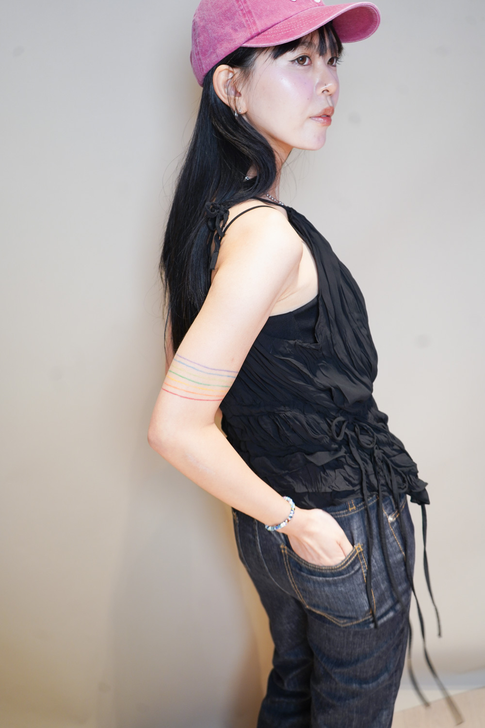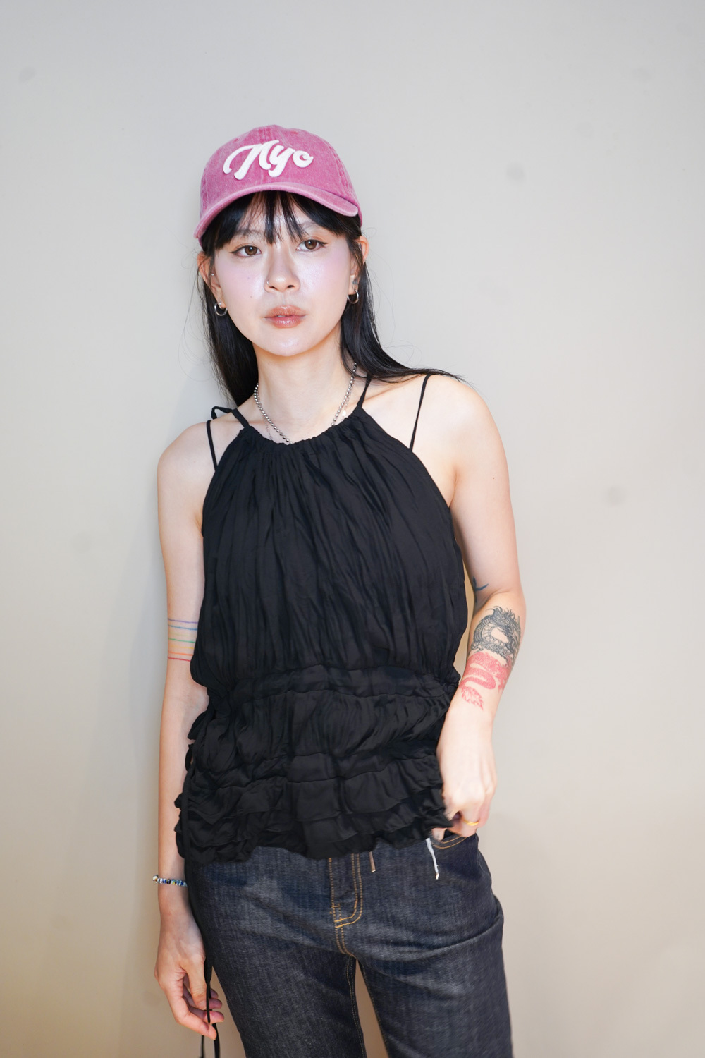 Wrinkle loose tank top (BLACK) (WHITE/BLACK)