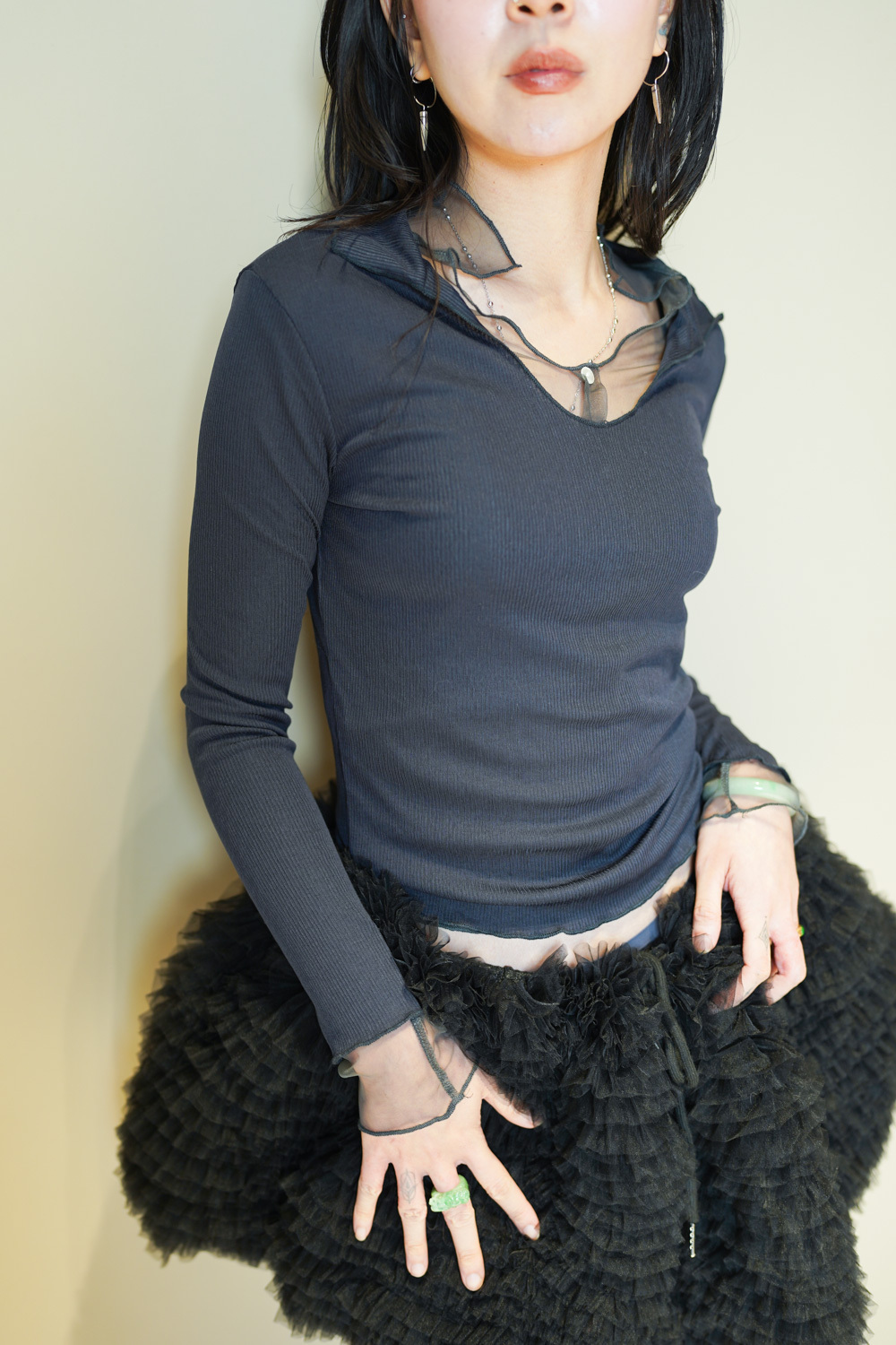 疊穿紗top 領口及袖子可露出紗紗邊/修飾手臂線條 令手臂更修長/