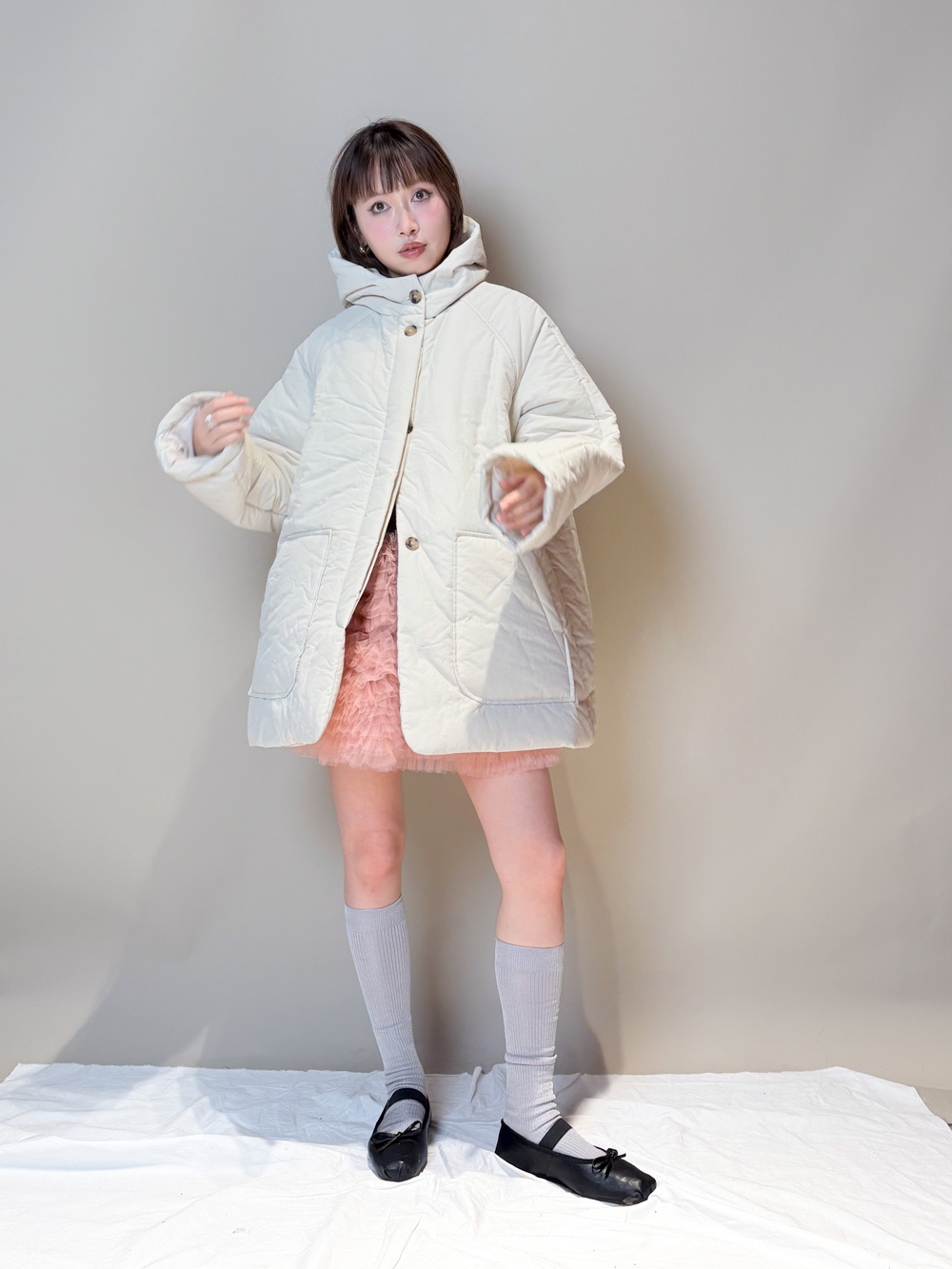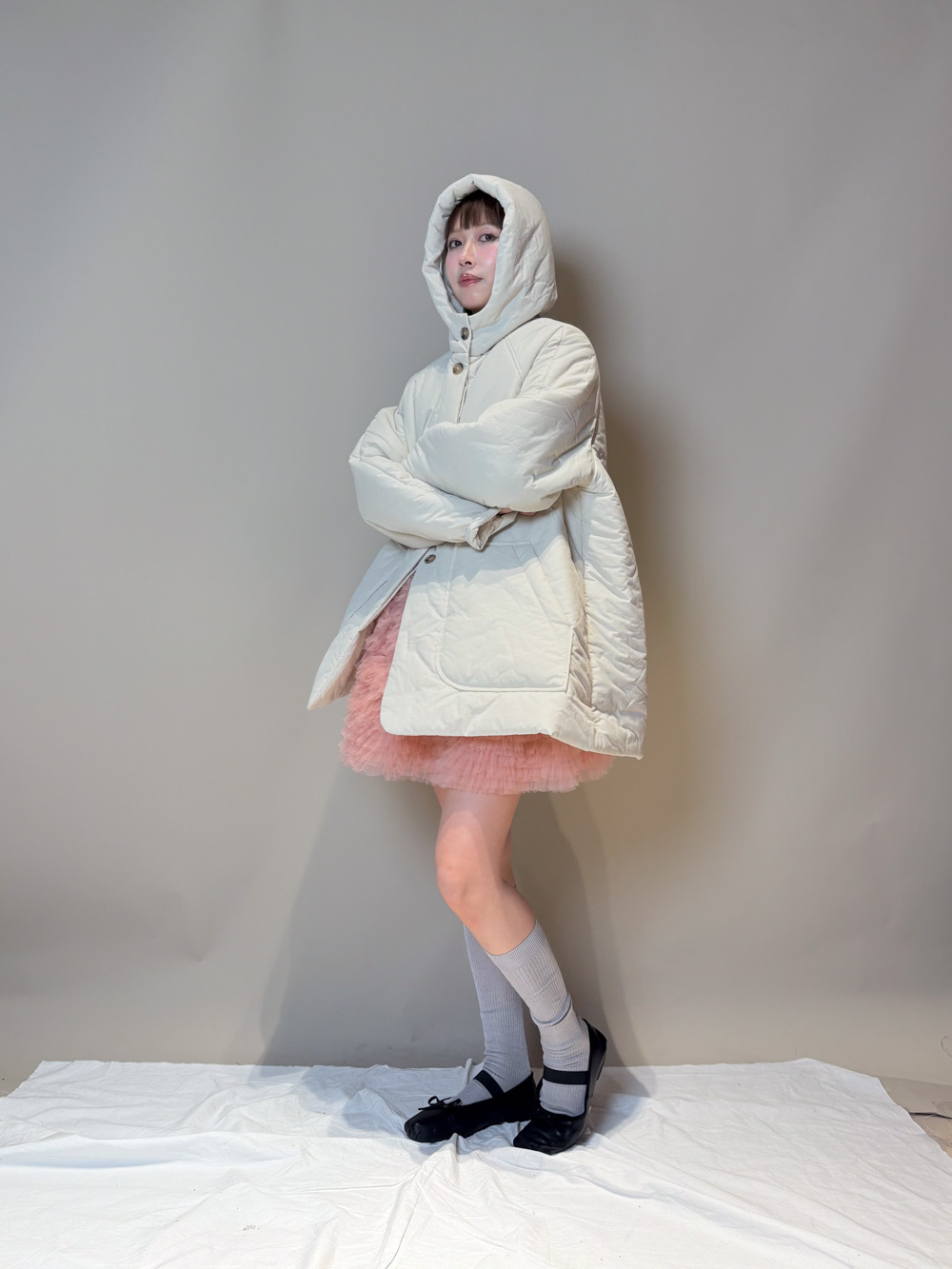 加厚版 Hooded A padded jacket (IVORY/GREY/BLACK)
